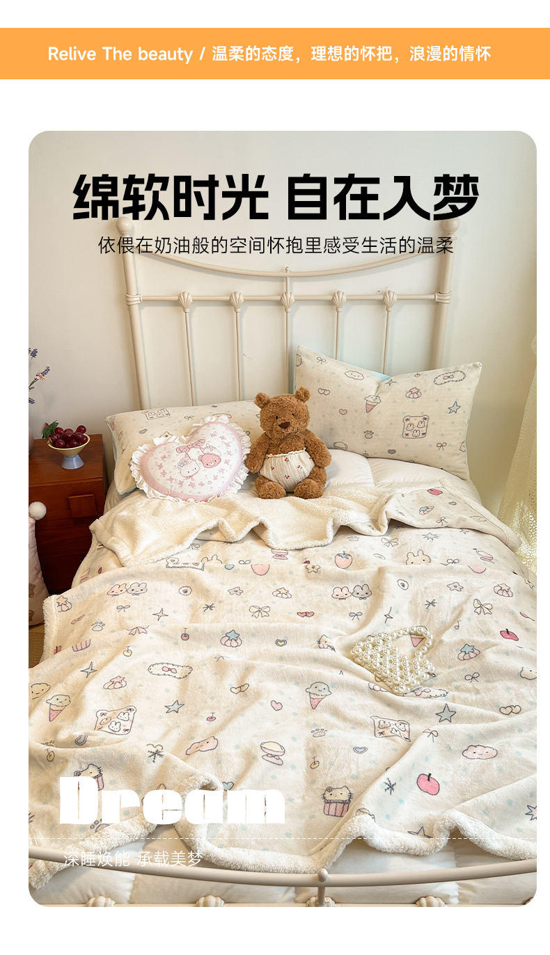 (总)红嘴企鹅 2025新款花边加厚牛奶绒单品床盖单件床盖三件套,波点狗,波点猫,大力,蛋糕狗,点心,蝶梦,动物乐园,蝴蝶狗狗,可爱比熊,萌萌熊,梦幻小熊,摩卡熊,奶油狗,平安猫,棋盘狗,少女猫咪,生日Party,圣诞老人,圣诞猫,淘气狗,小星甜点,星星乐园,星云小熊,羞羞猫,字母熊