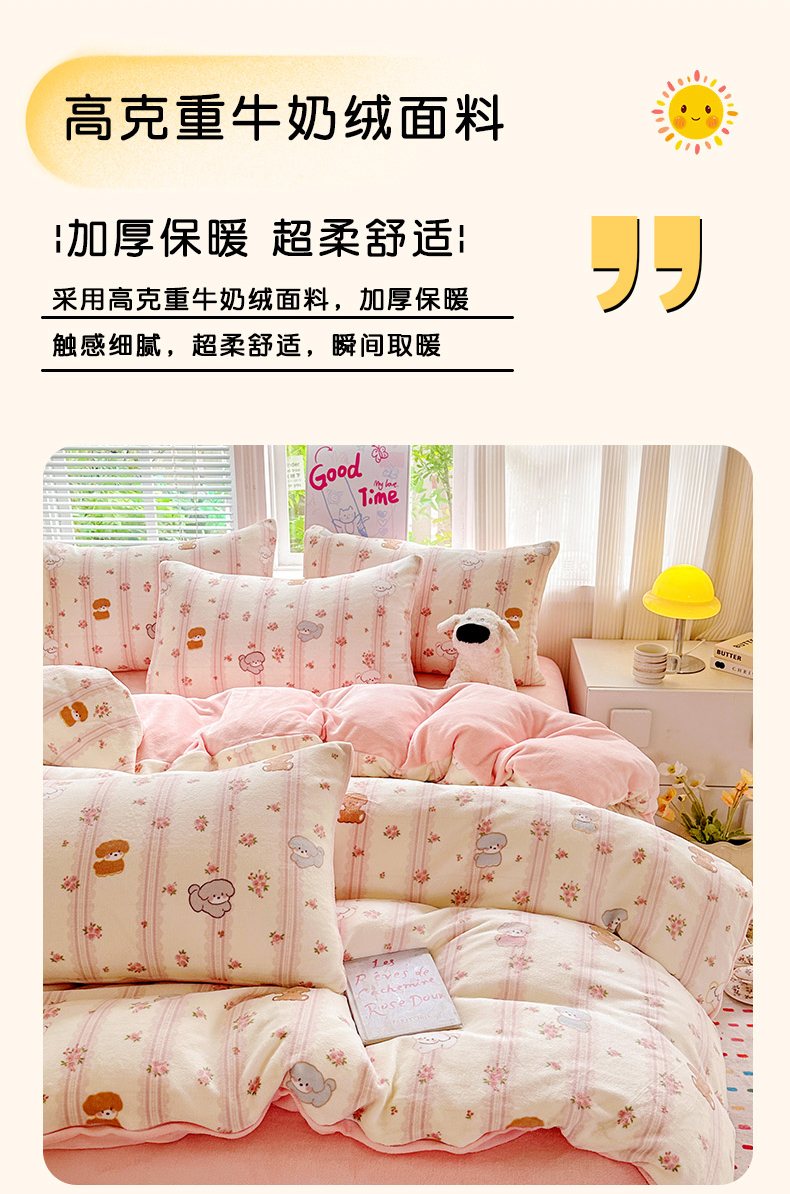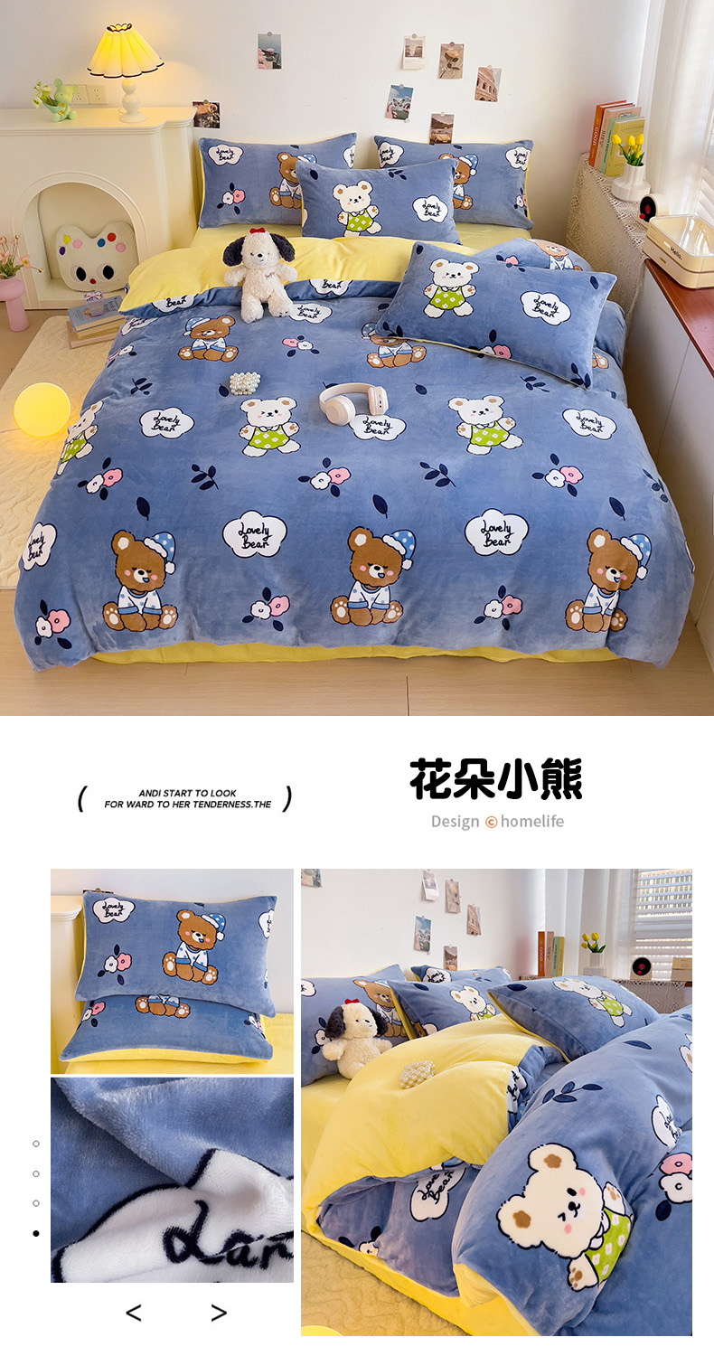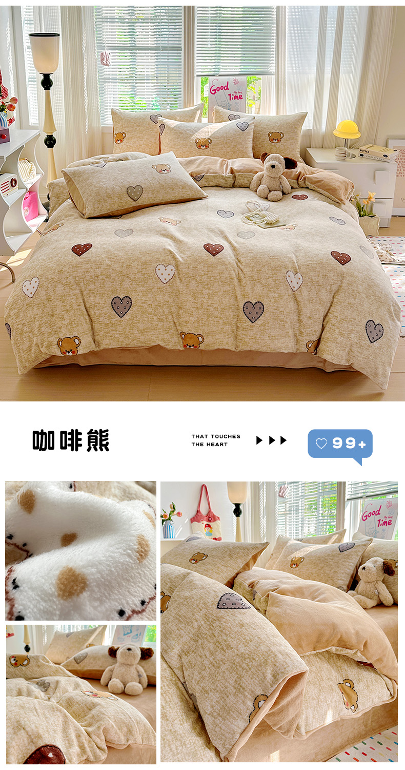 当前位置: 91家纺网 > 商品网购 > 床品套件 > 四件套 > 牛奶绒四件套 > 西引力 2025新款亲肤舒适加厚牛奶绒印花四件套 爱心熊