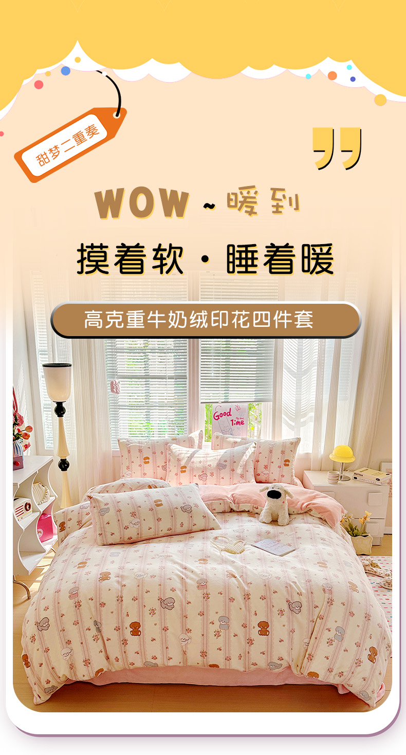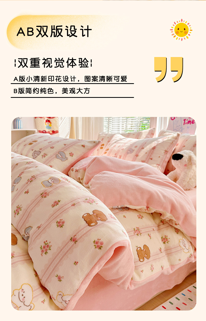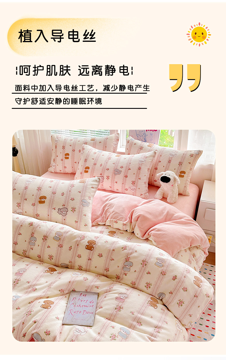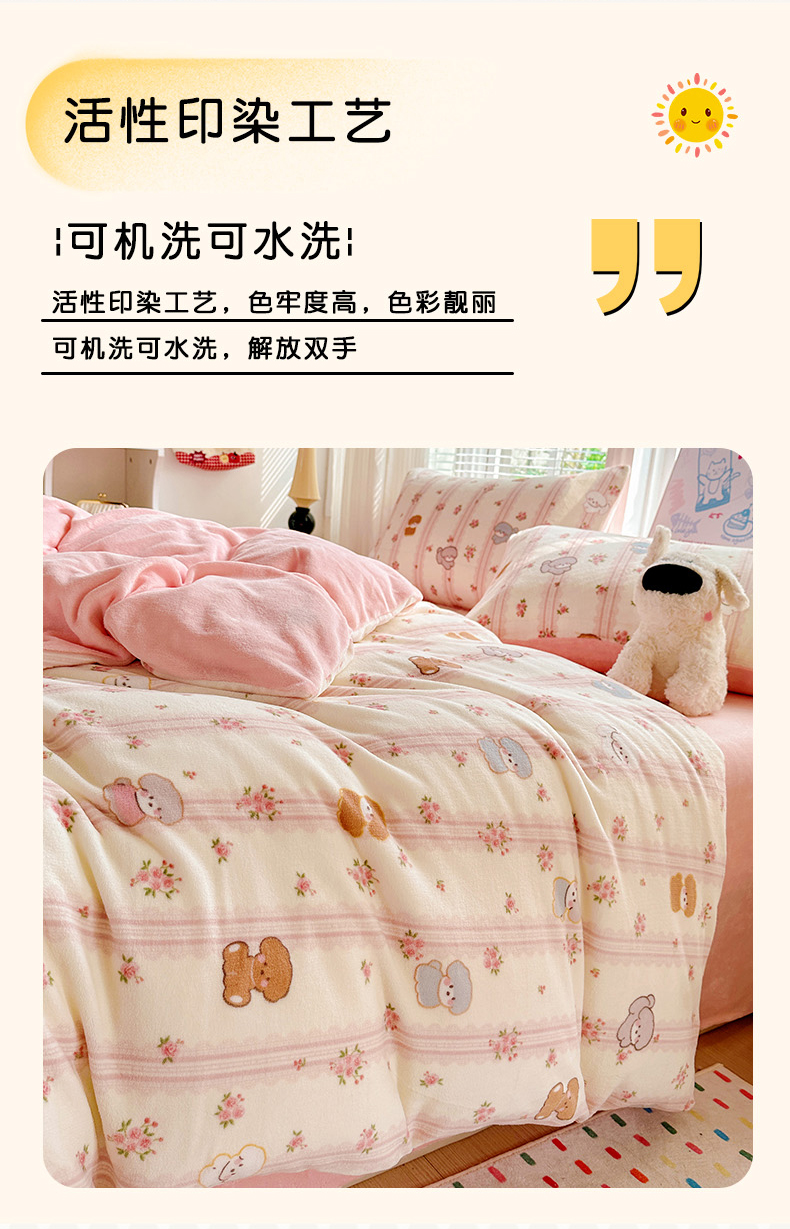 当前位置: 91家纺网 > 商品网购 > 床品套件 > 四件套 > 牛奶绒四件套 > 西引力 2025新款亲肤舒适加厚牛奶绒印花四件套 爱心熊