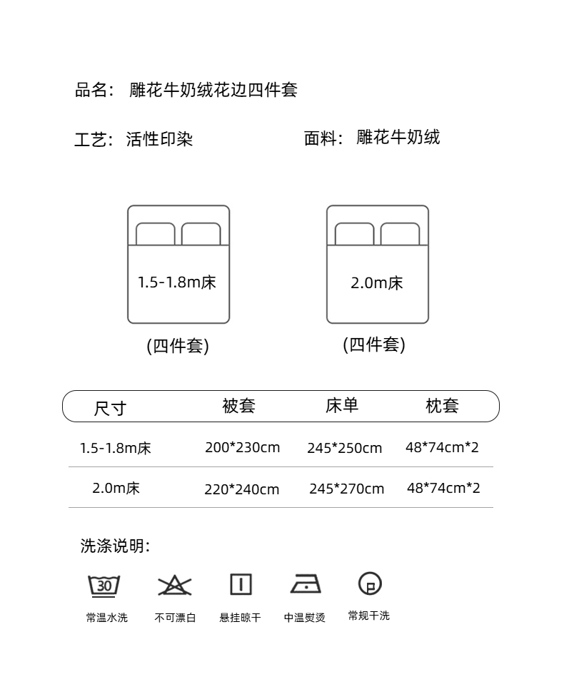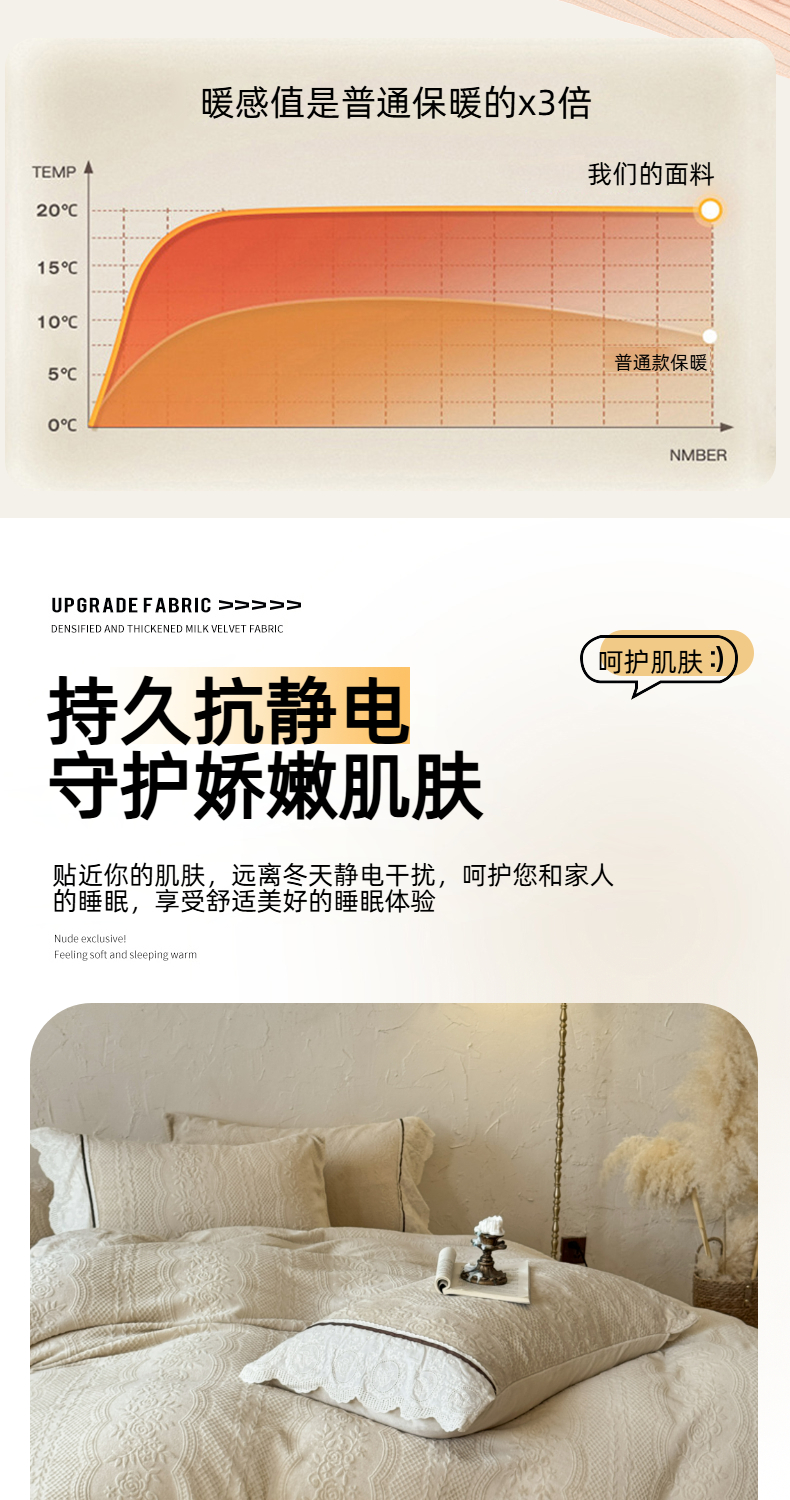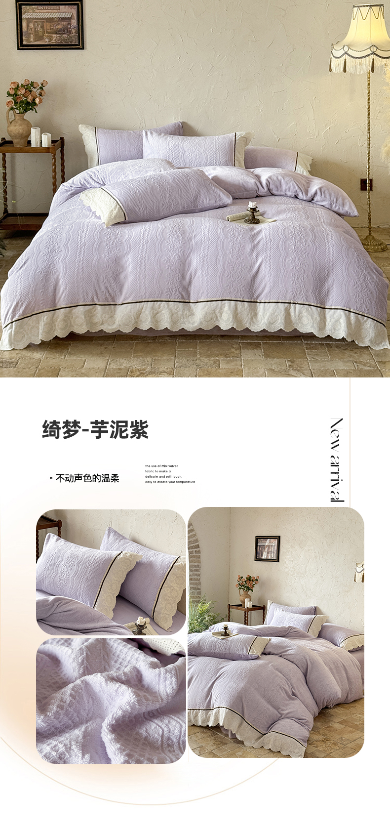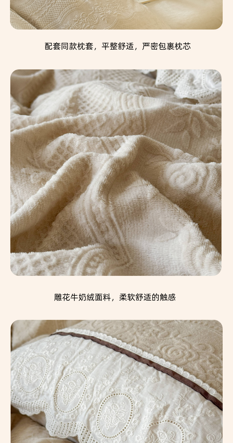 (总)纯优家纺 2025新款秋冬轻法式花边款雕花牛奶绒四件套-绮梦,绮梦-蜜桃粉,绮梦-米黄,绮梦-芋泥紫
