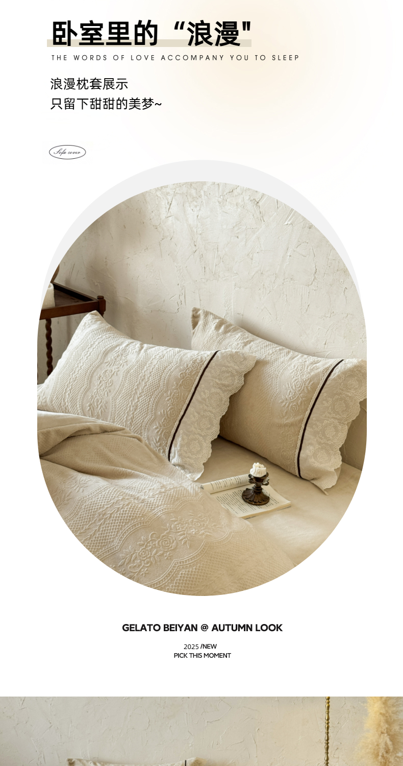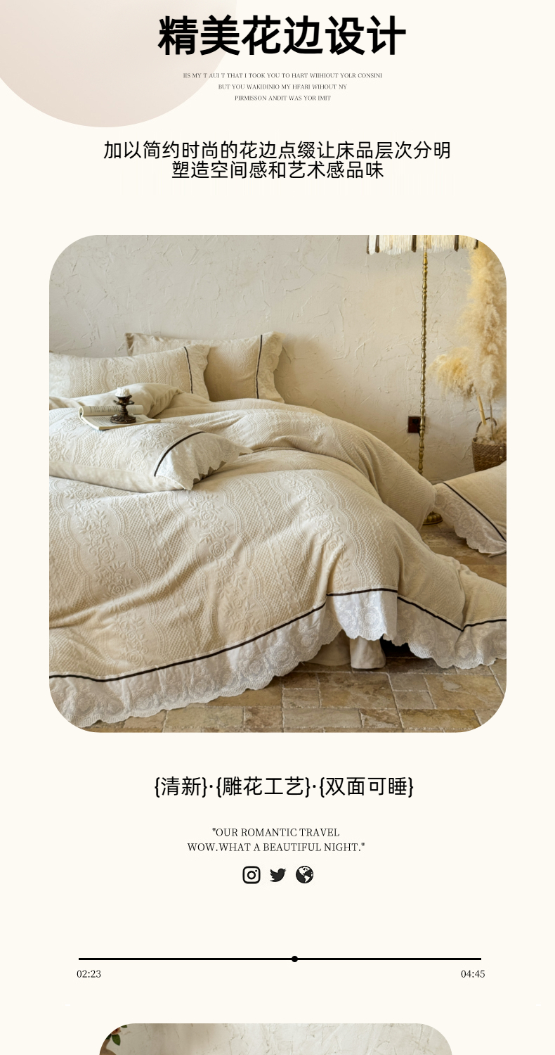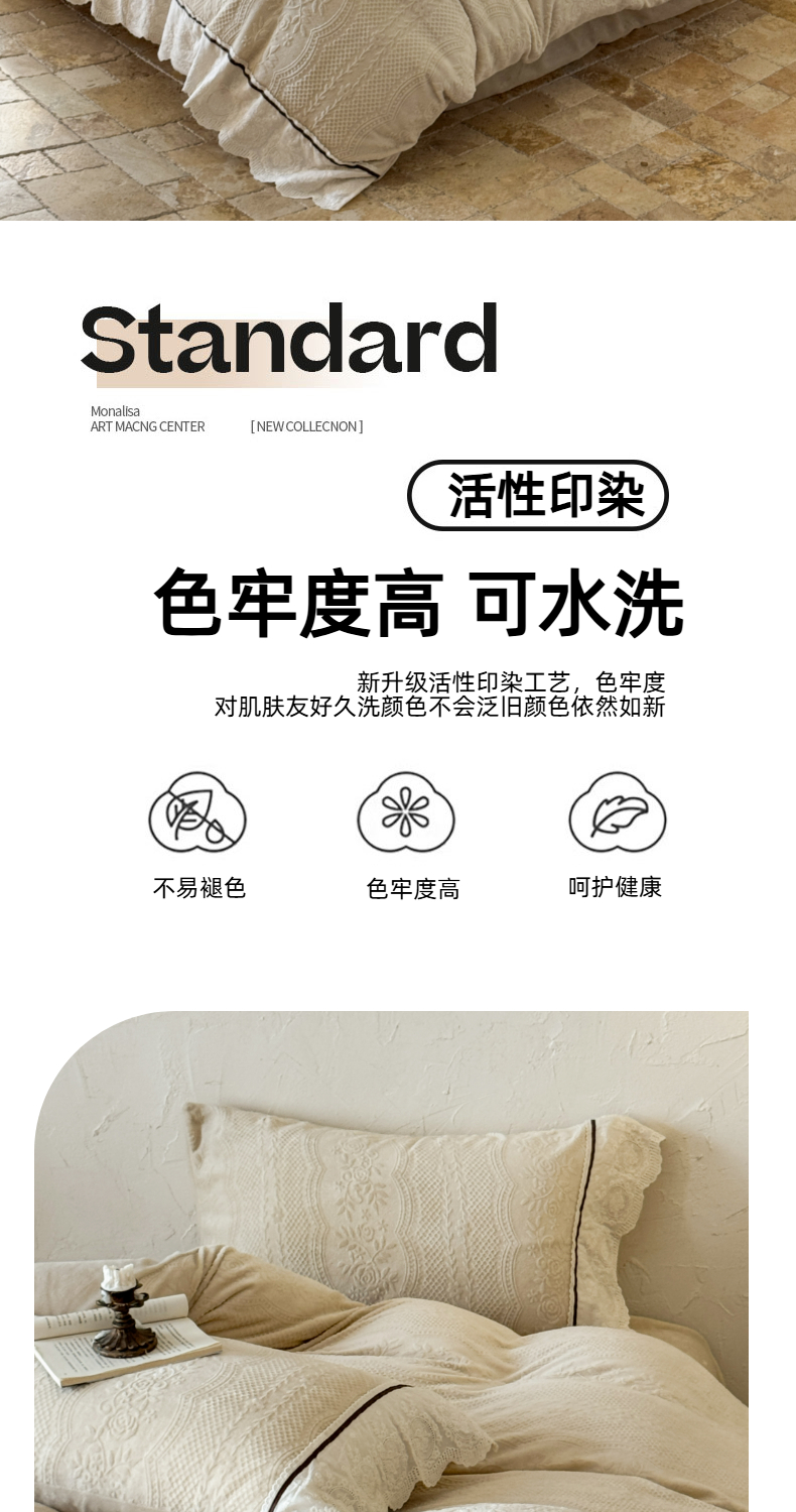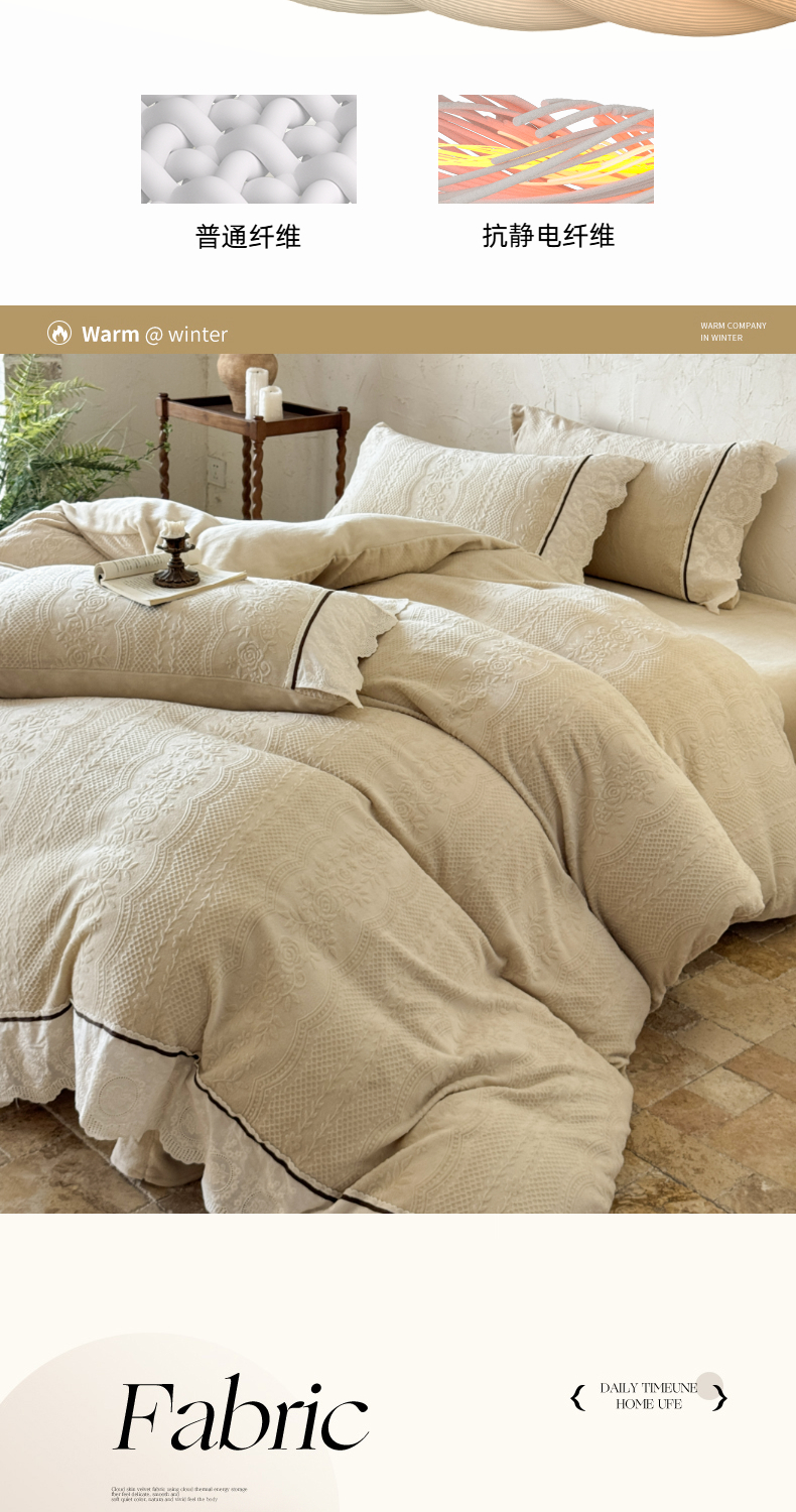 纯优家纺 2025新款秋冬轻法式花边款雕花牛奶绒四件套-绮梦 绮梦-米黄