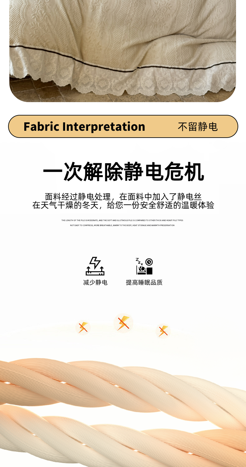 商品名称:纯优家纺 2025新款秋冬轻法式花边款雕花牛奶绒四件套-绮梦 绮梦-米黄