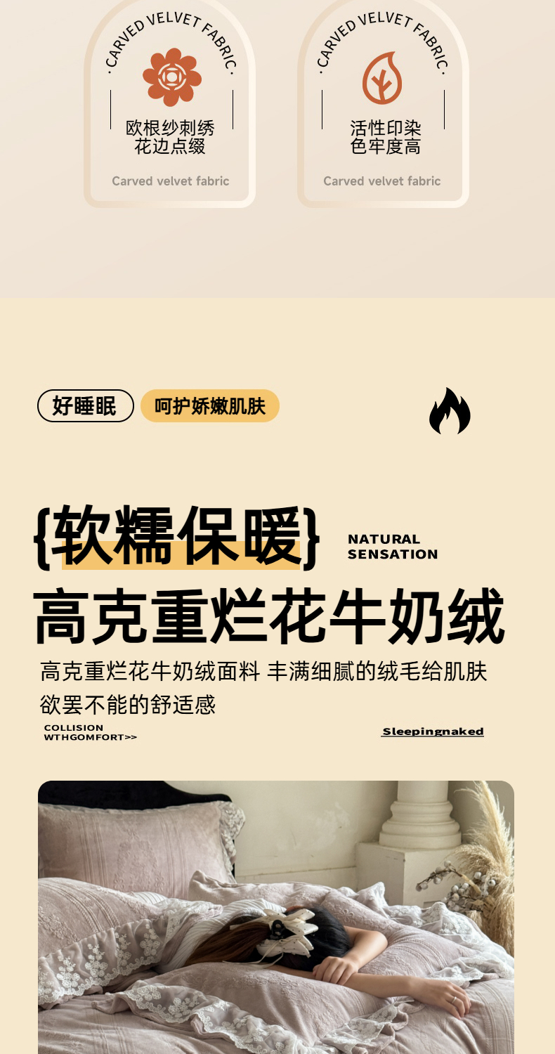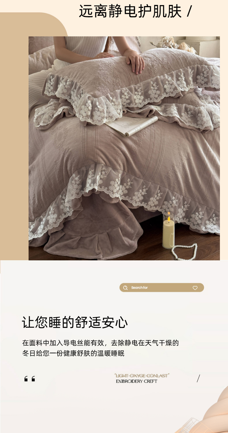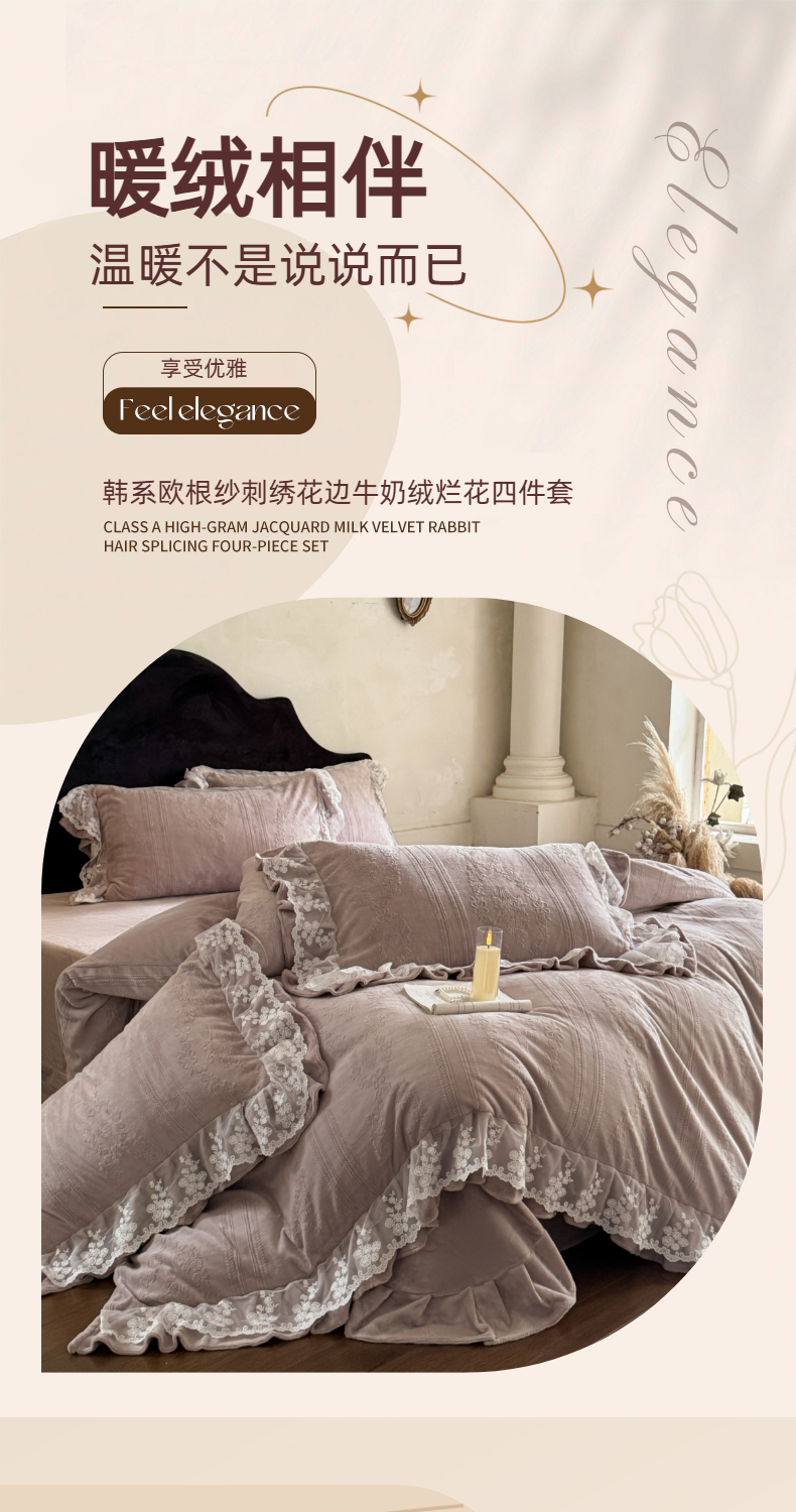 当前位置: 91家纺网 > 商品网购 > 床品套件 > 四件套 > 牛奶绒四件套 > (总)纯优家纺 2025新款韩系欧根纱刺绣花边牛奶绒烂花四件套-玛德琳