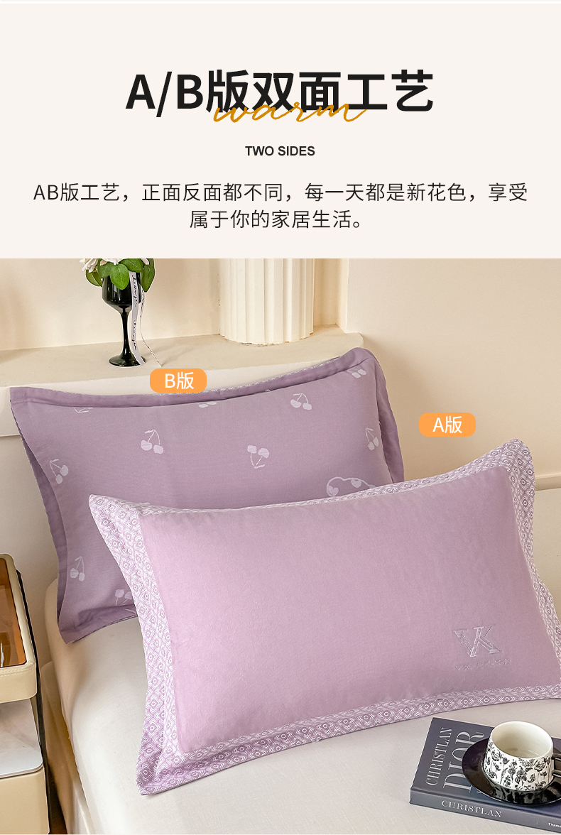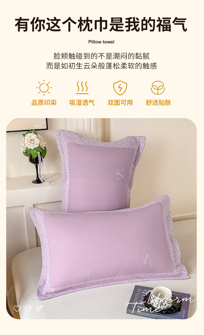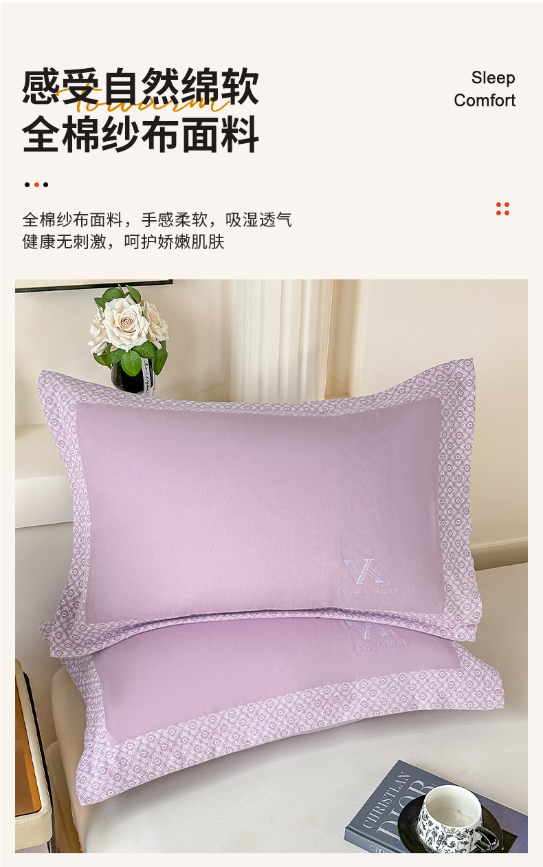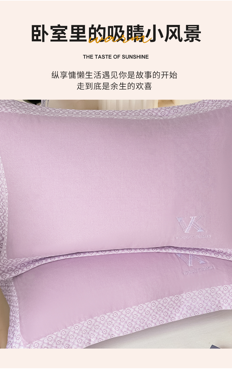 沐瑟家纺 2025新款怡家枕套单品枕套枕套单件 花边-紫色