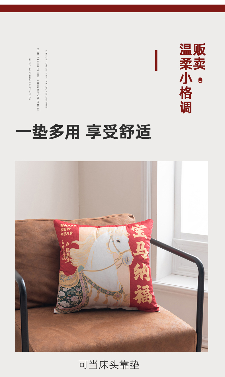 商品名称:博笔熊家纺 2025新款马年荷兰绒抱枕 马年鸿运