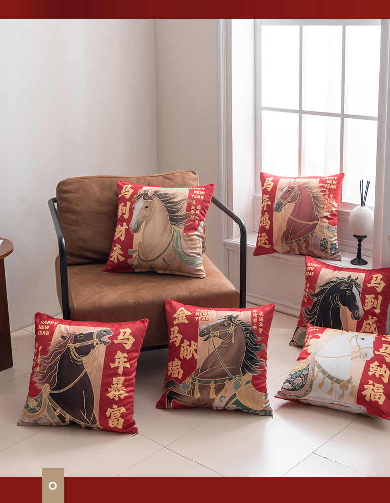 博笔熊家纺 2025新款马年荷兰绒抱枕 马年鸿运
