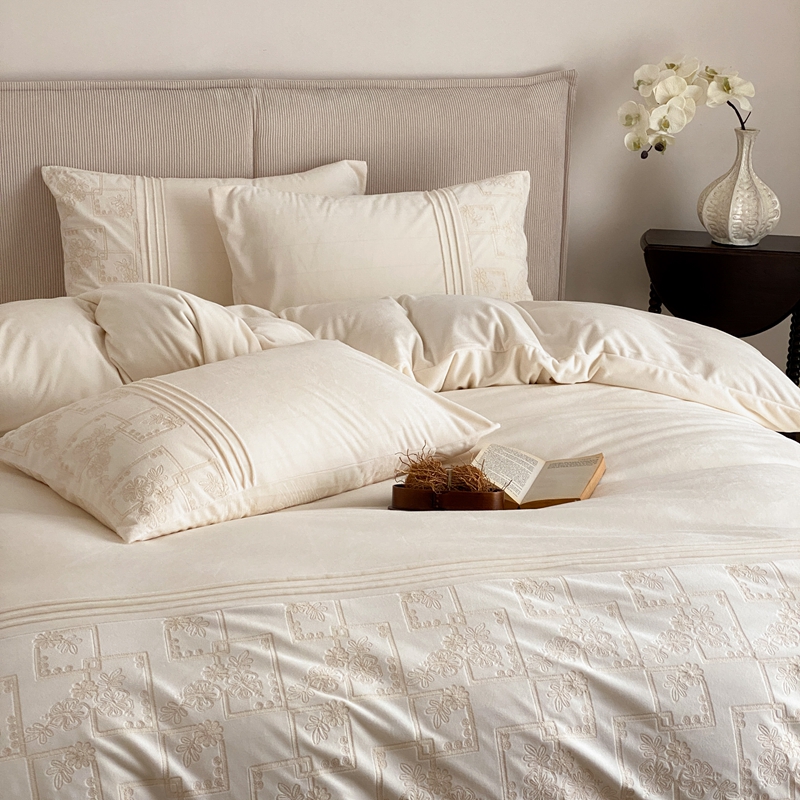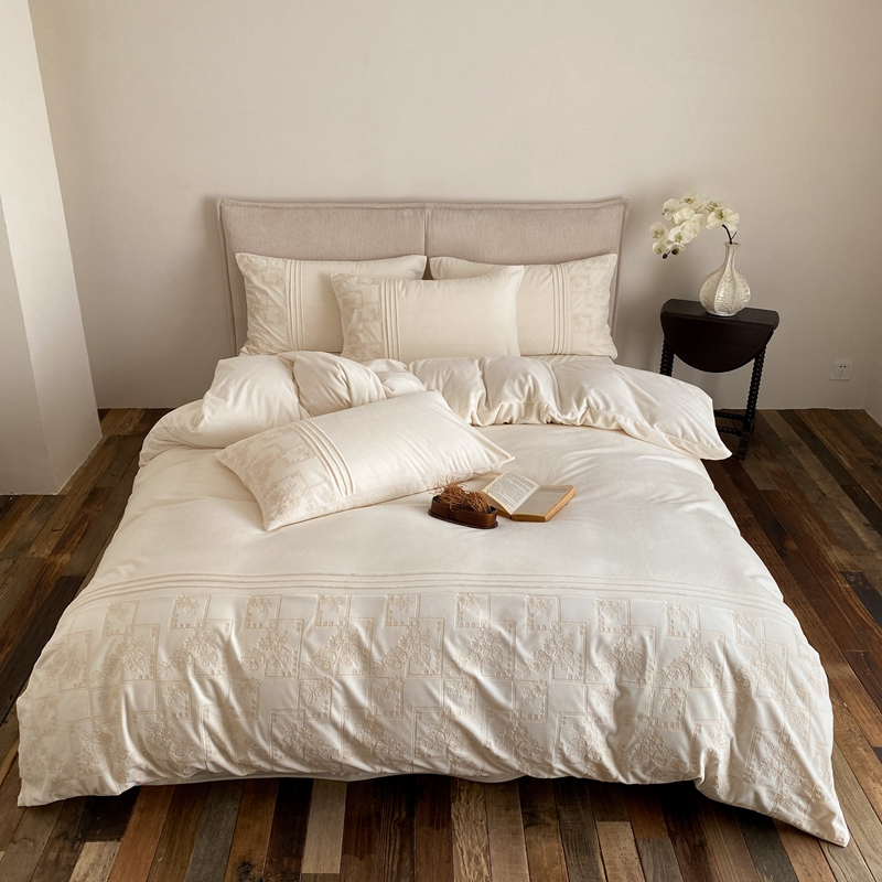 商品名称:(总)佳汐蓝家纺 2025新款230g婴肤绒刺绣四件套-目光(卷后不低于318元)