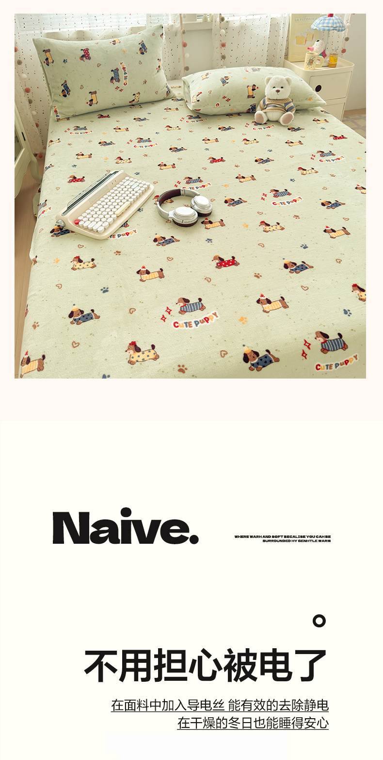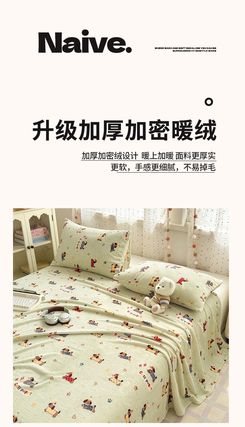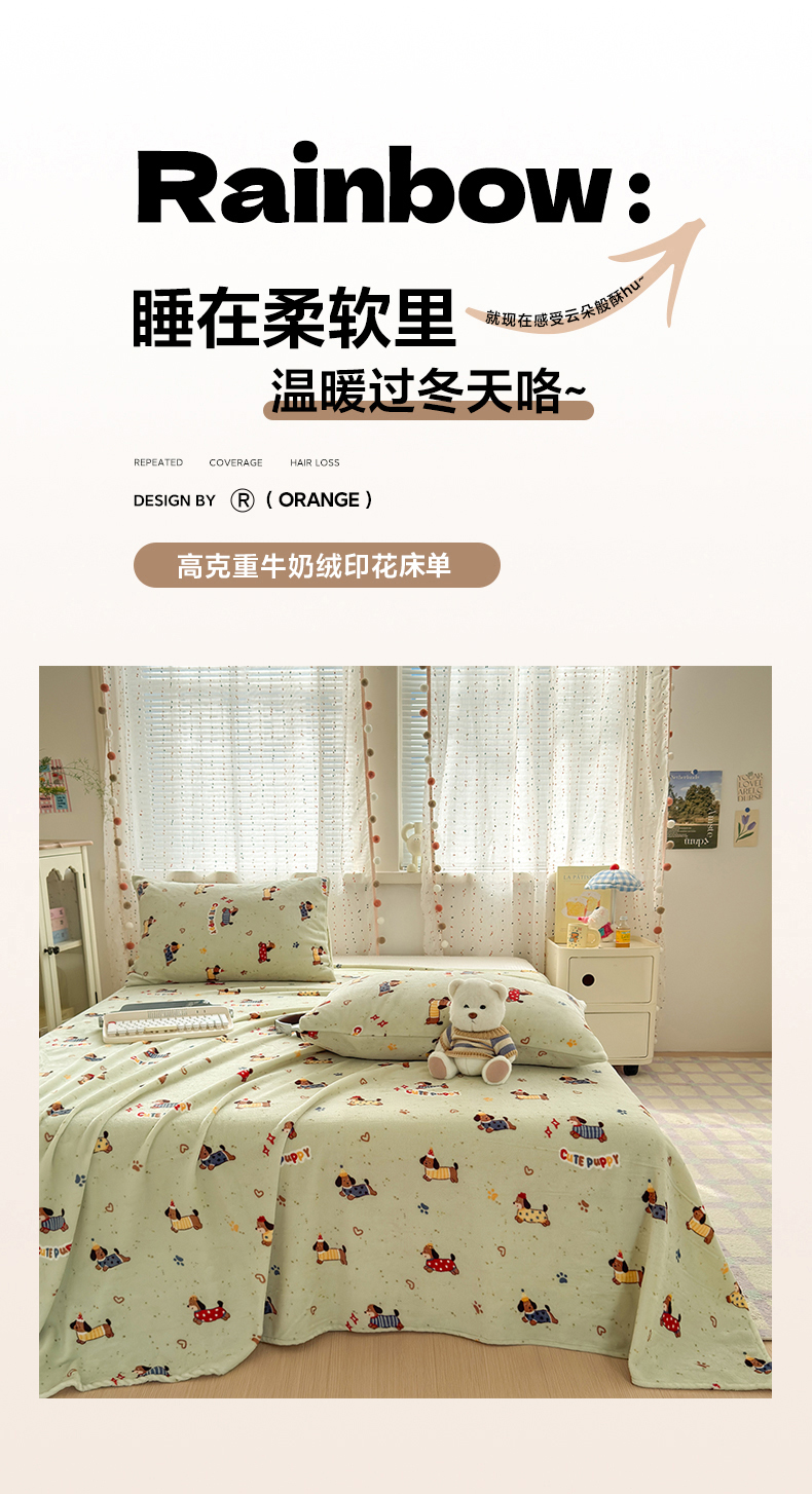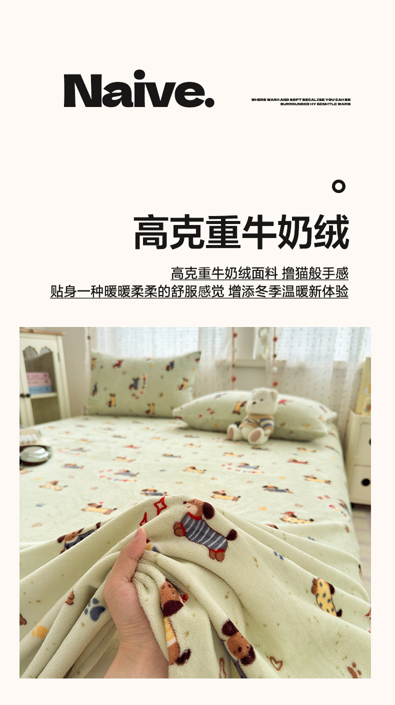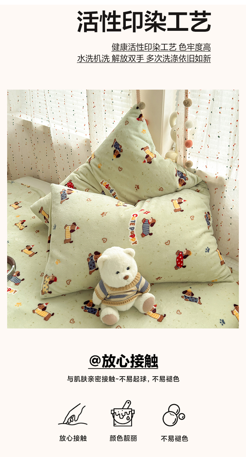 • 91家纺网 家纺一手货源 找家纺 沐芷 2025 A类牛奶绒床单高克重加厚床单单件加绒床单三件套珊瑚绒 提供买家秀(下载文件包,包含买家秀) 【绒】绿色腊肠狗