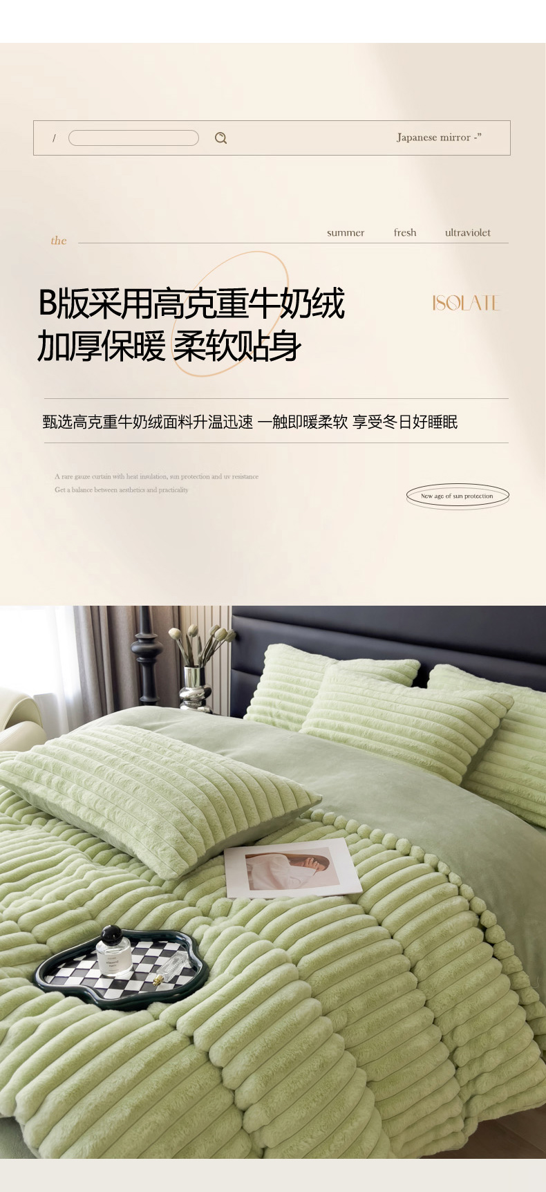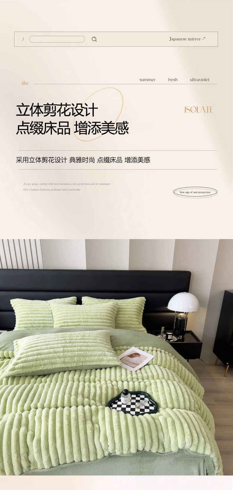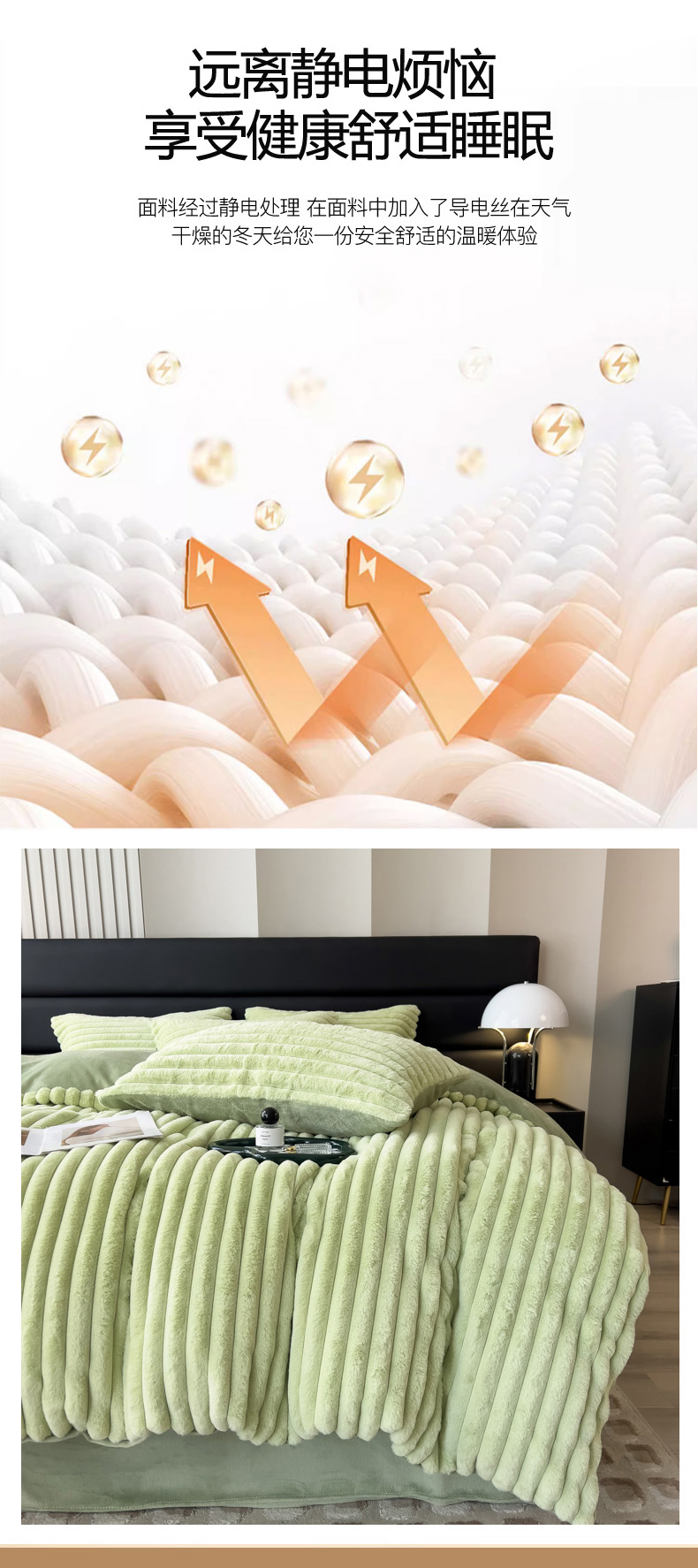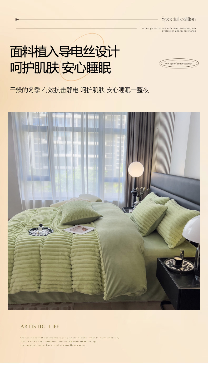 当前位置: 91家纺网 > 商品网购 > 床品套件 > 四件套 > 兔毛绒四件套 > 印季家纺 2025新款立体剪花条纹兔毛绒四件套 草绿