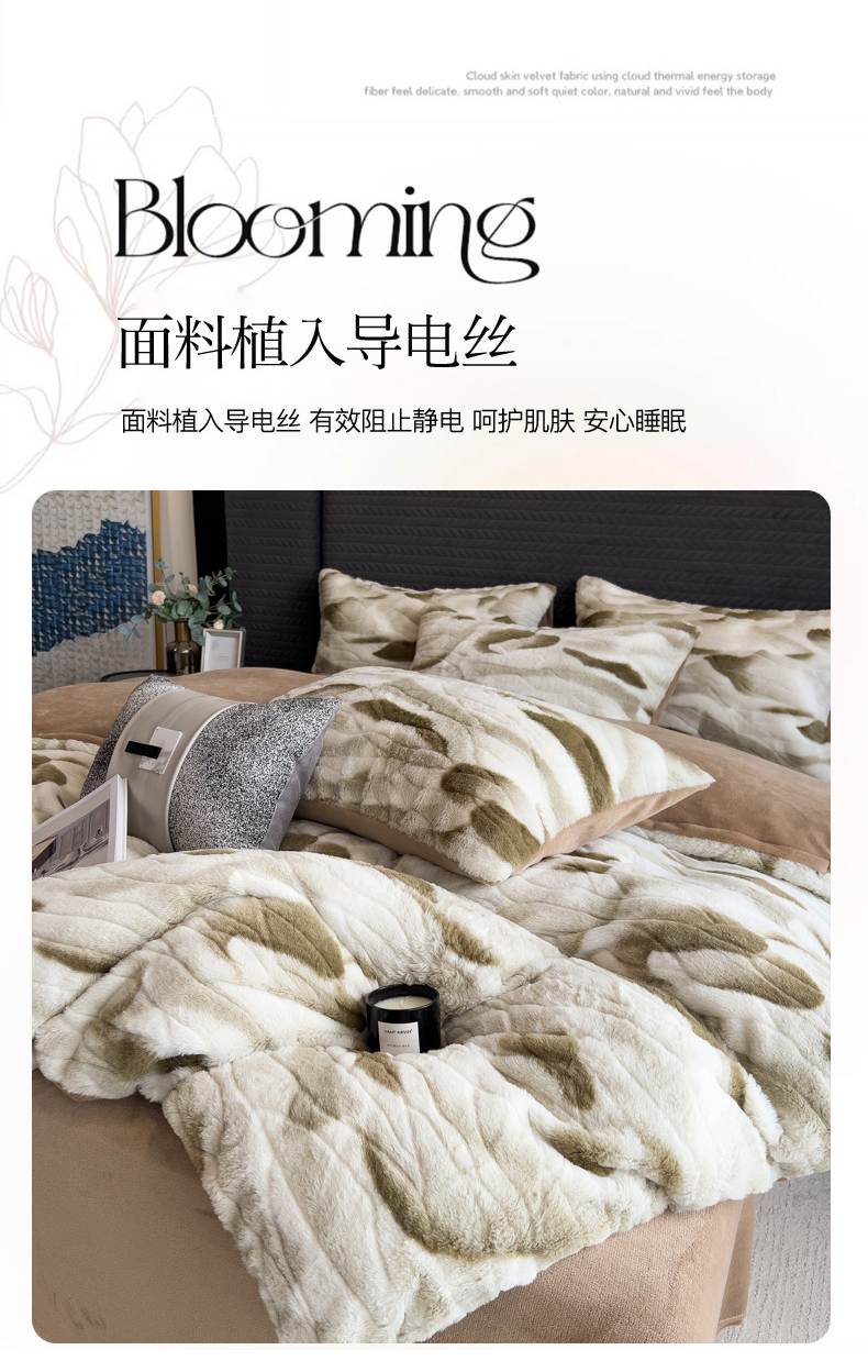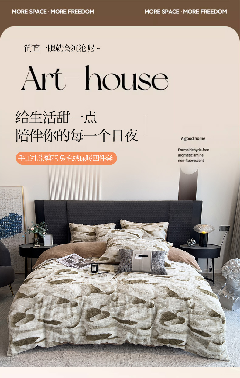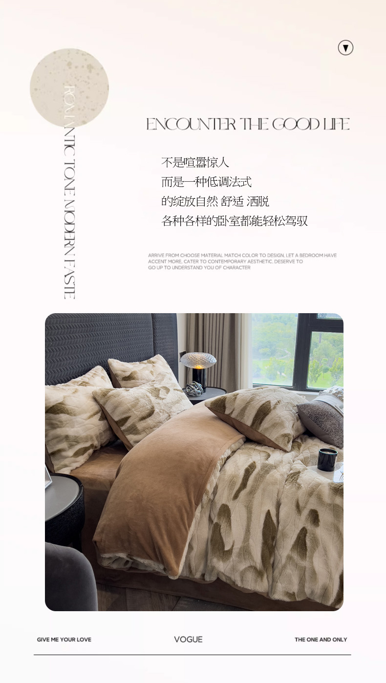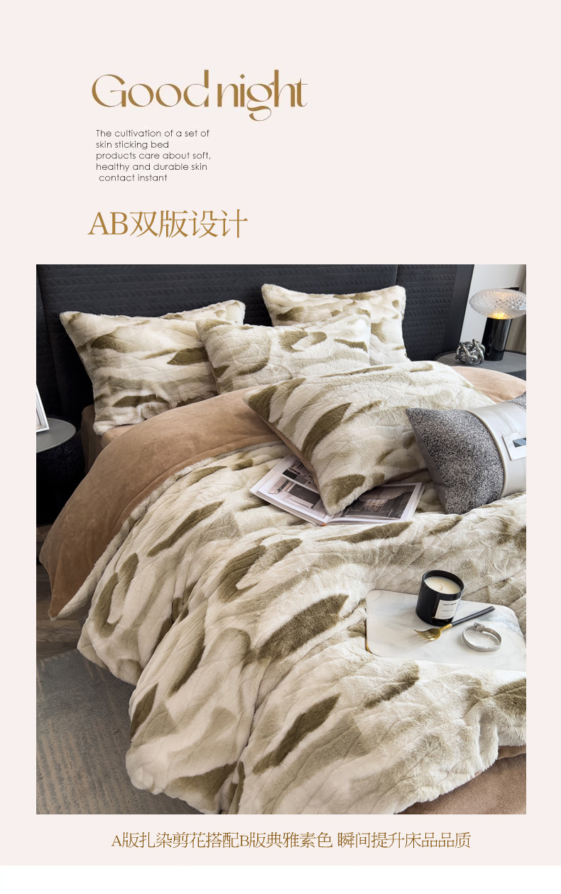 当前位置: 91家纺网 > 商品网购 > 床品套件 > 四件套 > 兔毛绒四件套 > 印季家纺 2025新款手工扎染剪花兔毛绒四件套 剪花-咖啡