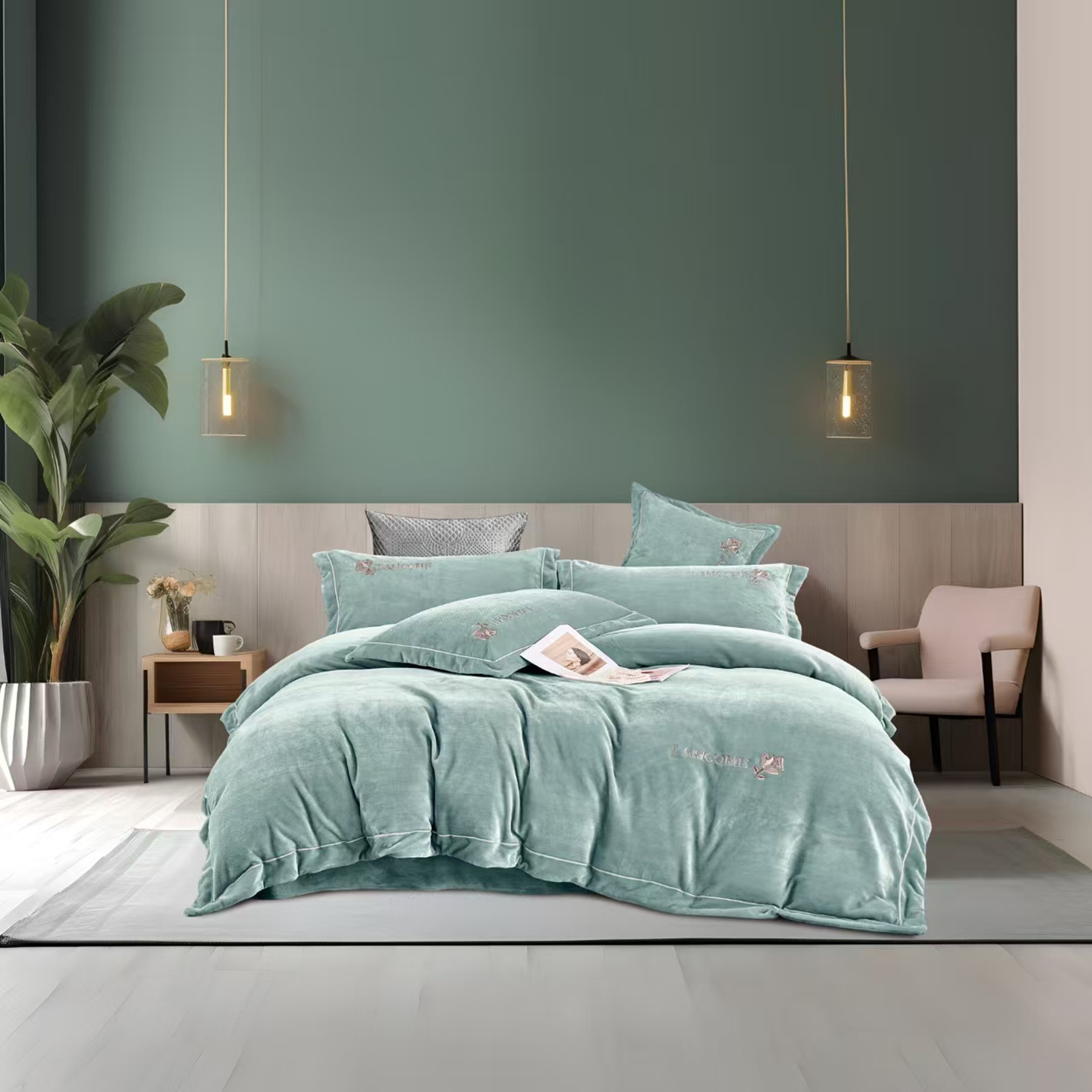 2025新款南苼肌理纹蚕丝绒四件套 青釉柔光