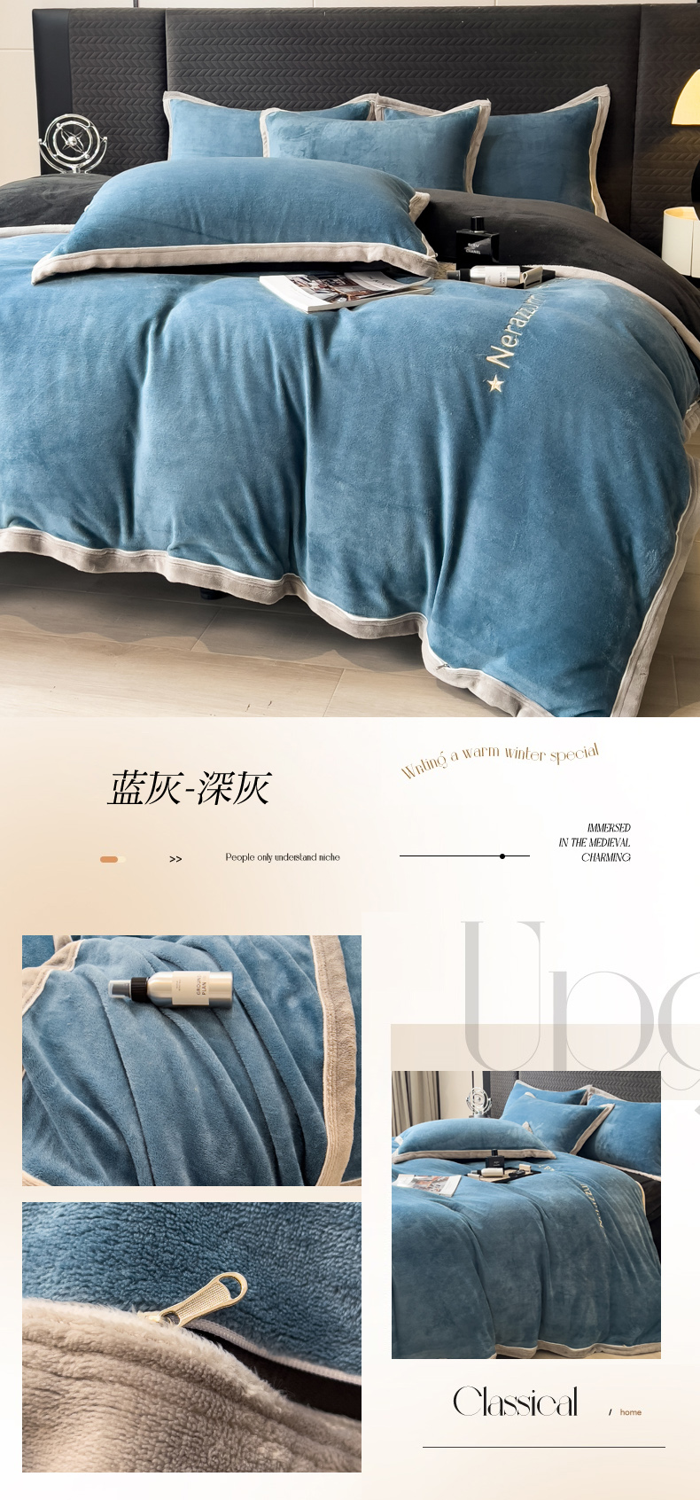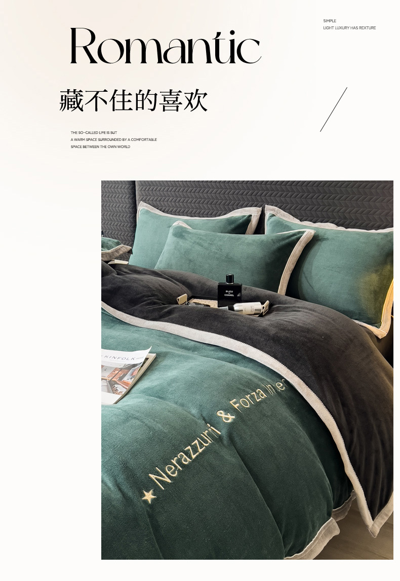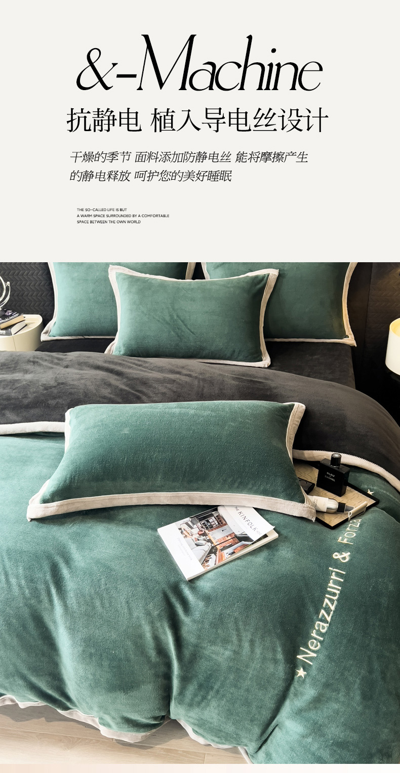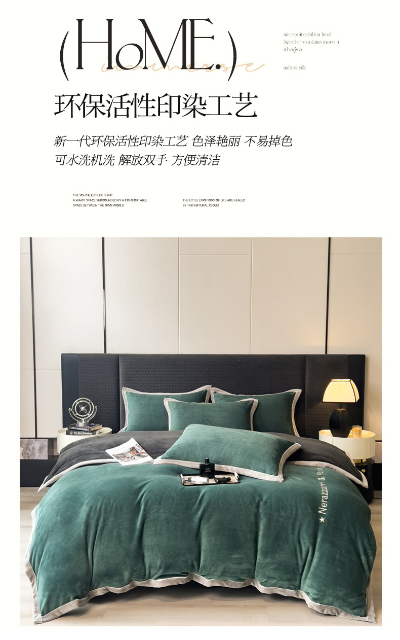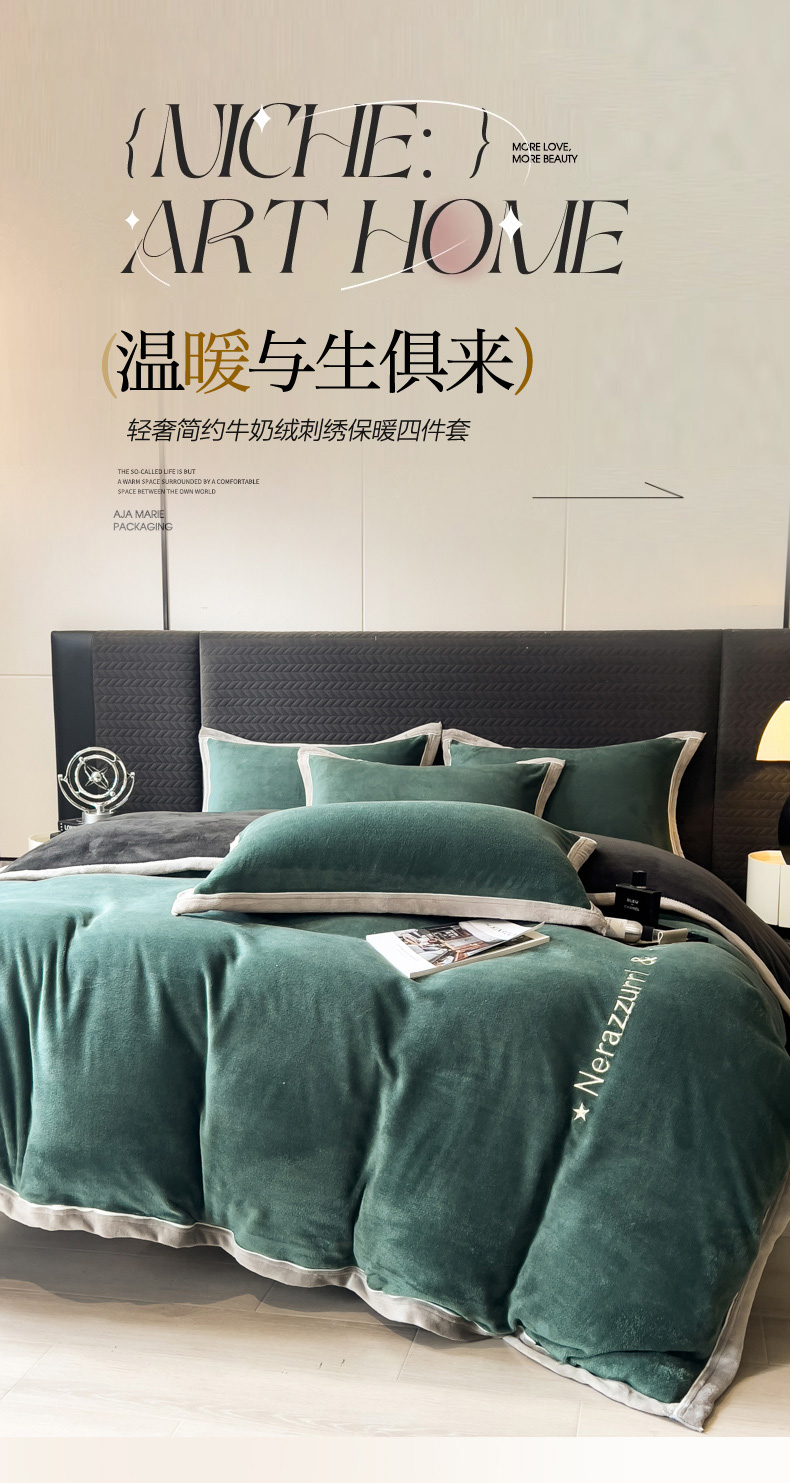 当前位置: 91家纺网 > 商品网购 > 床品套件 > 四件套 > 牛奶绒四件套 > 印季家纺 2025新款牛奶绒两星绣花包边四件套 灰绿-深灰