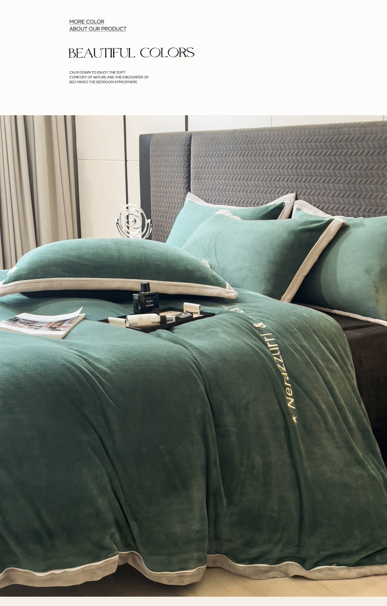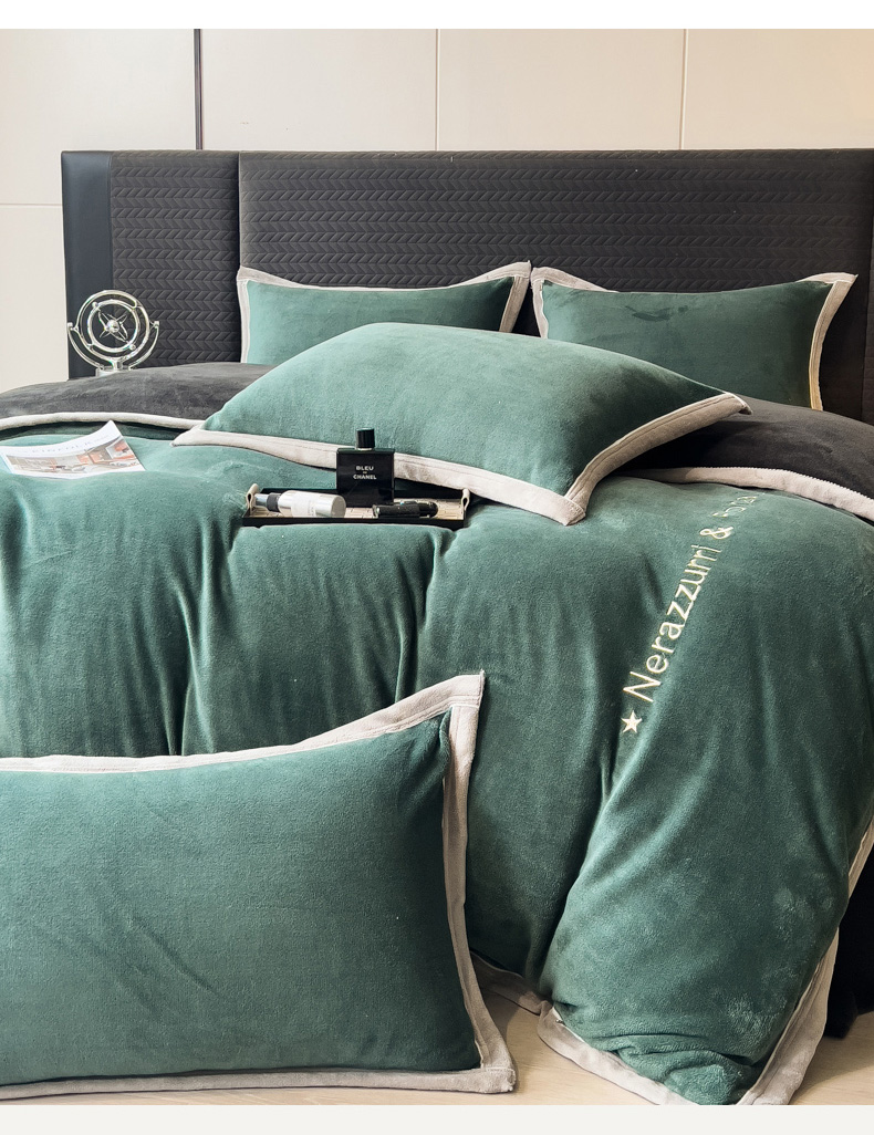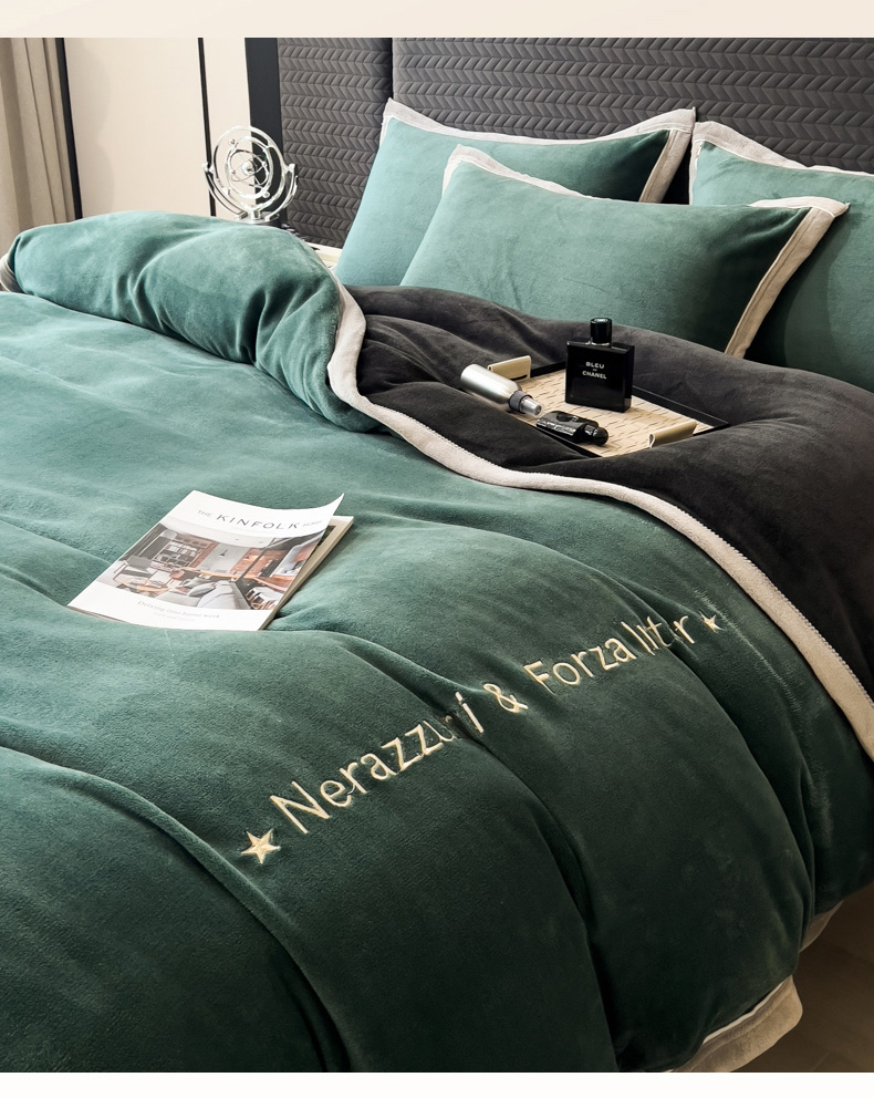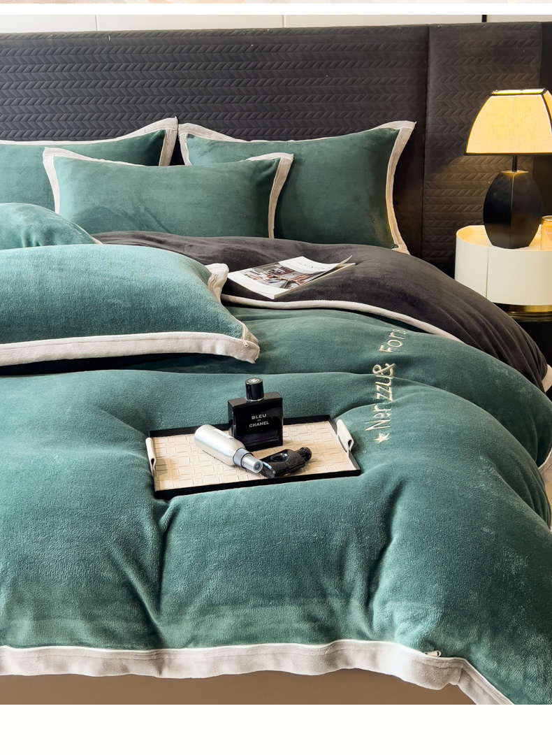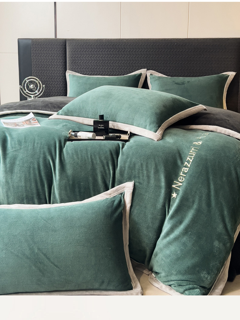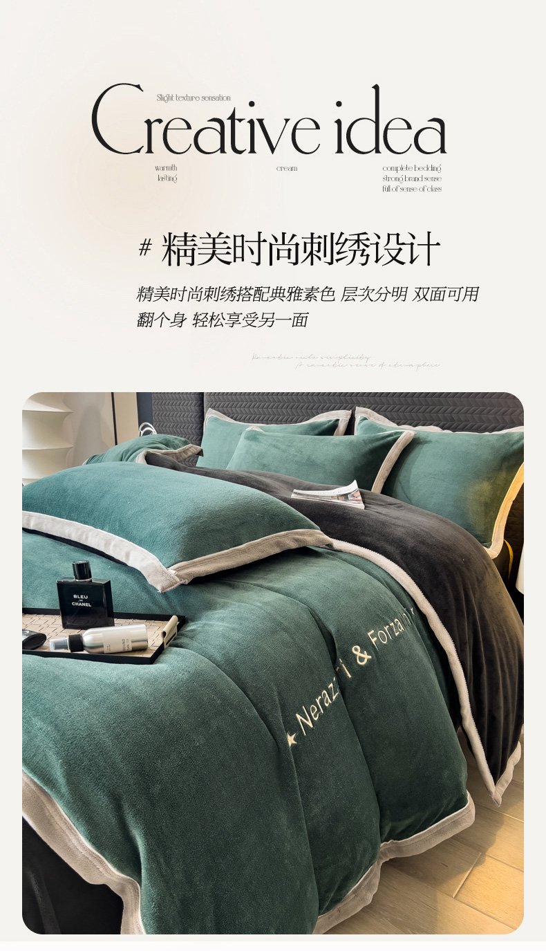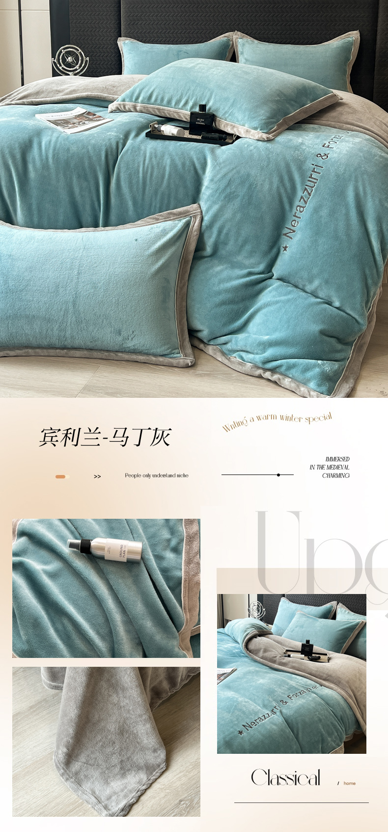 当前位置: 91家纺网 > 商品网购 > 床品套件 > 四件套 > 牛奶绒四件套 > 印季家纺 2025新款牛奶绒两星绣花包边四件套 灰绿-深灰