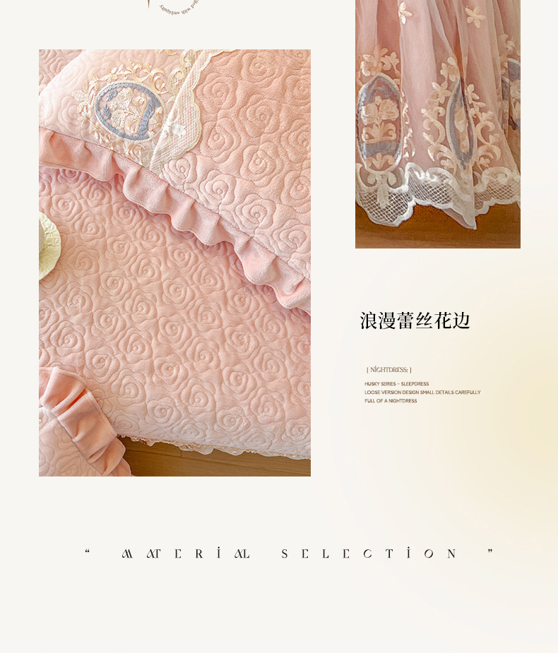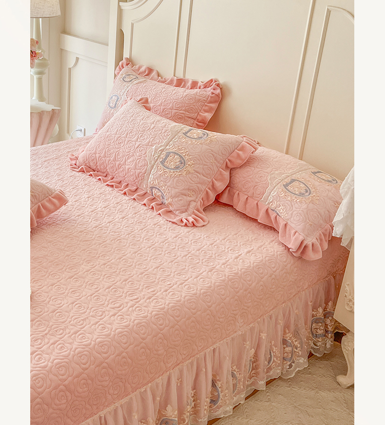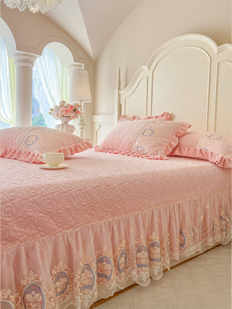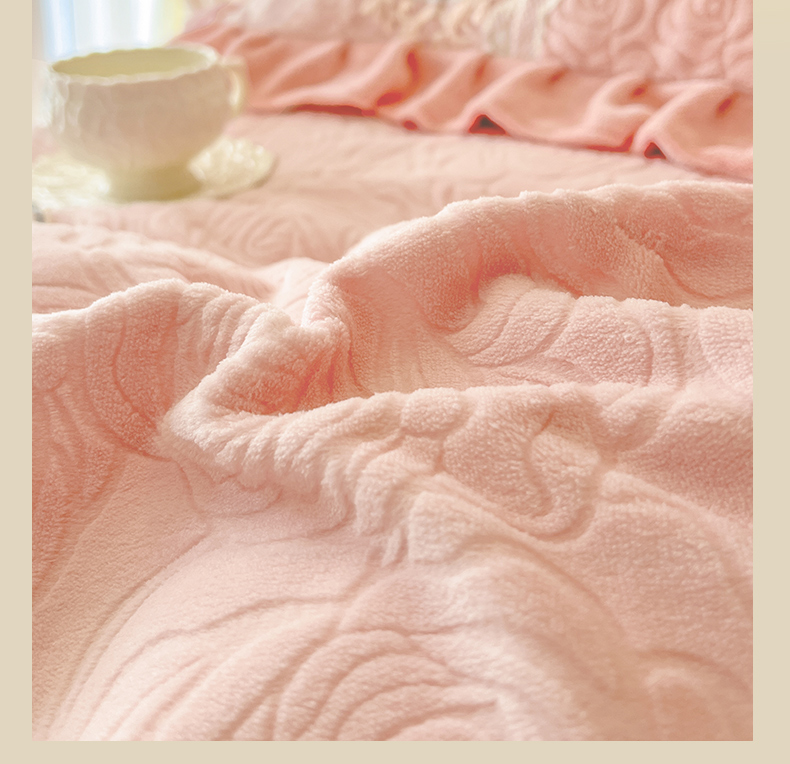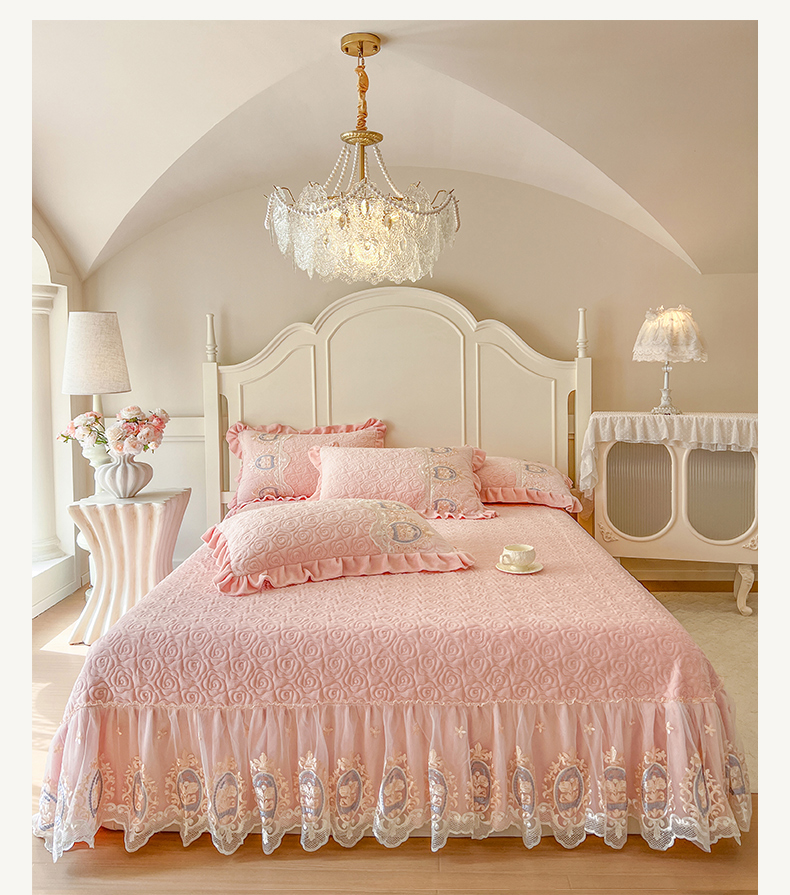 商品名称:恋尚 2025新款雕花牛奶绒绗缝夹棉床盖四件套-可可西里(控价305起) 可可西里-清新粉