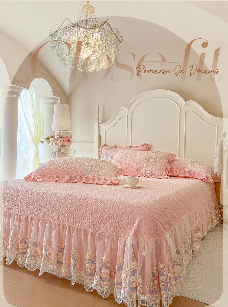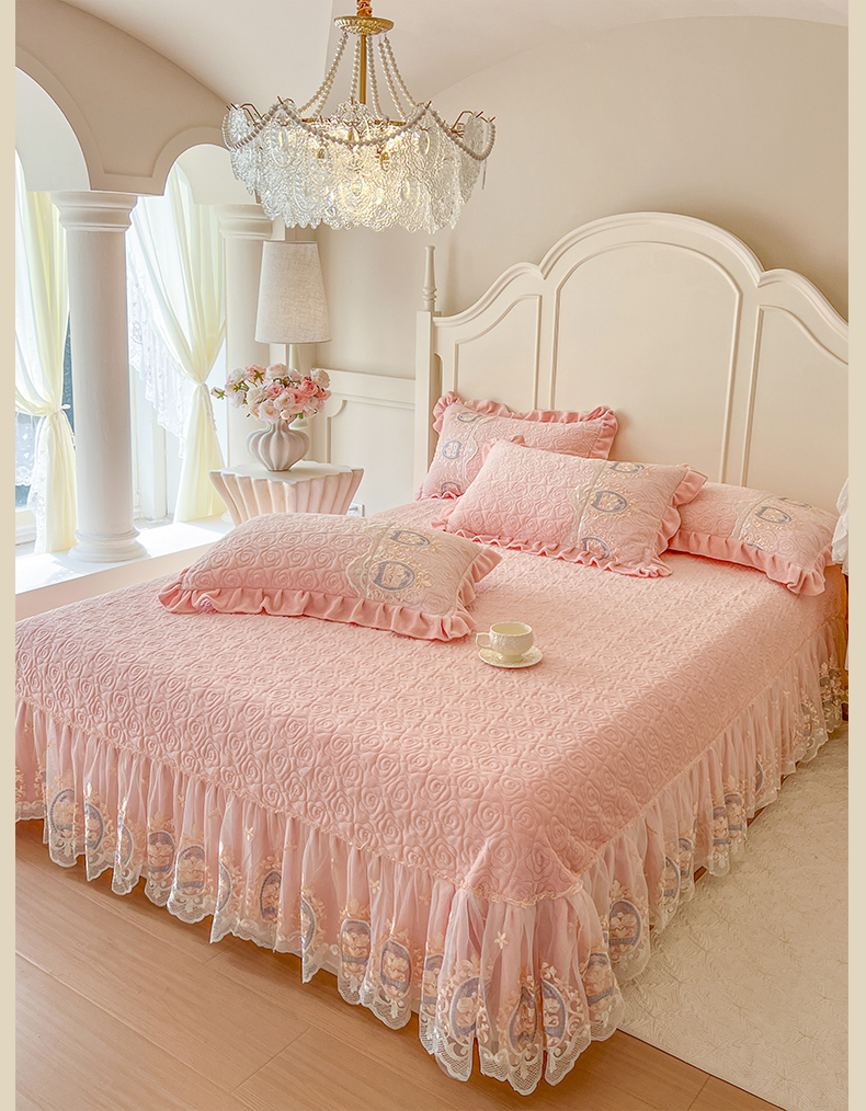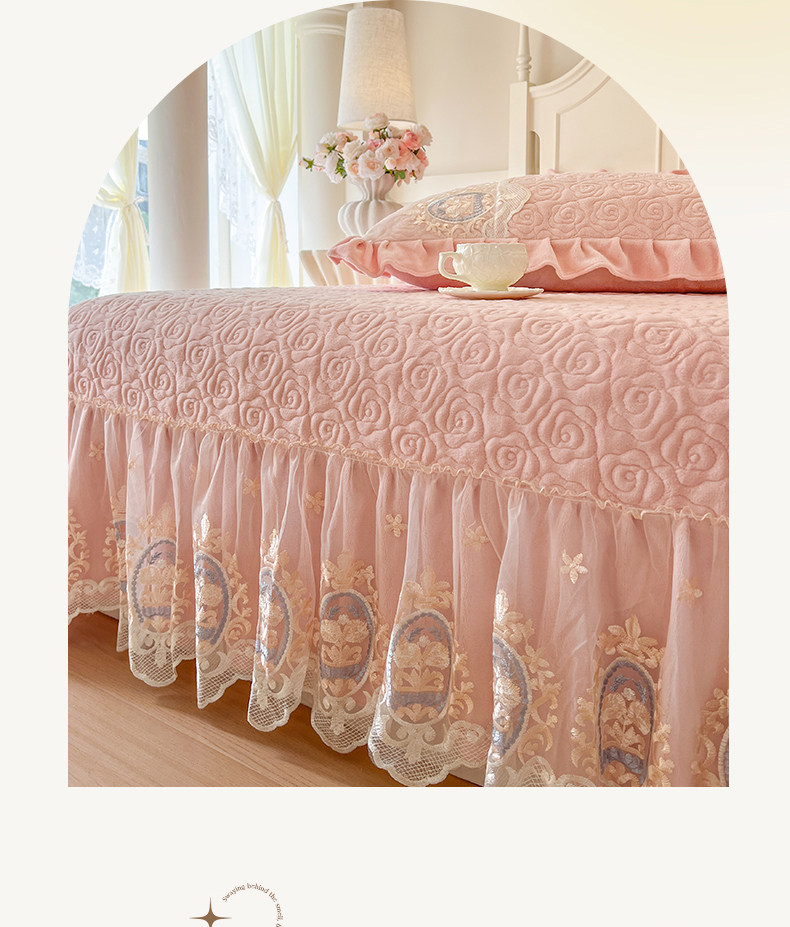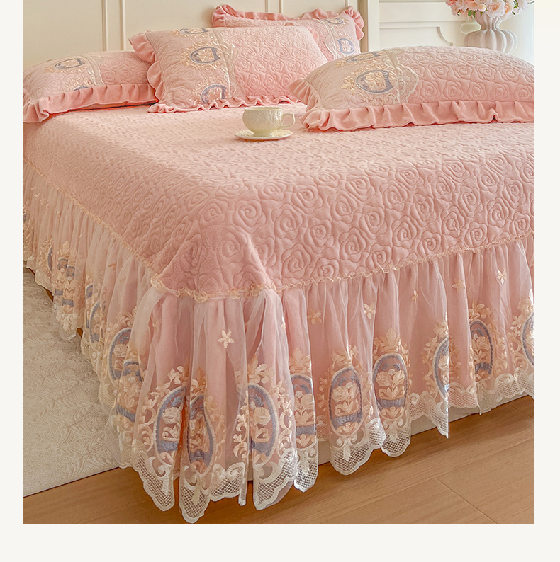 商品名称:恋尚 2025新款雕花牛奶绒绗缝夹棉床盖四件套-可可西里(控价305起) 可可西里-清新粉