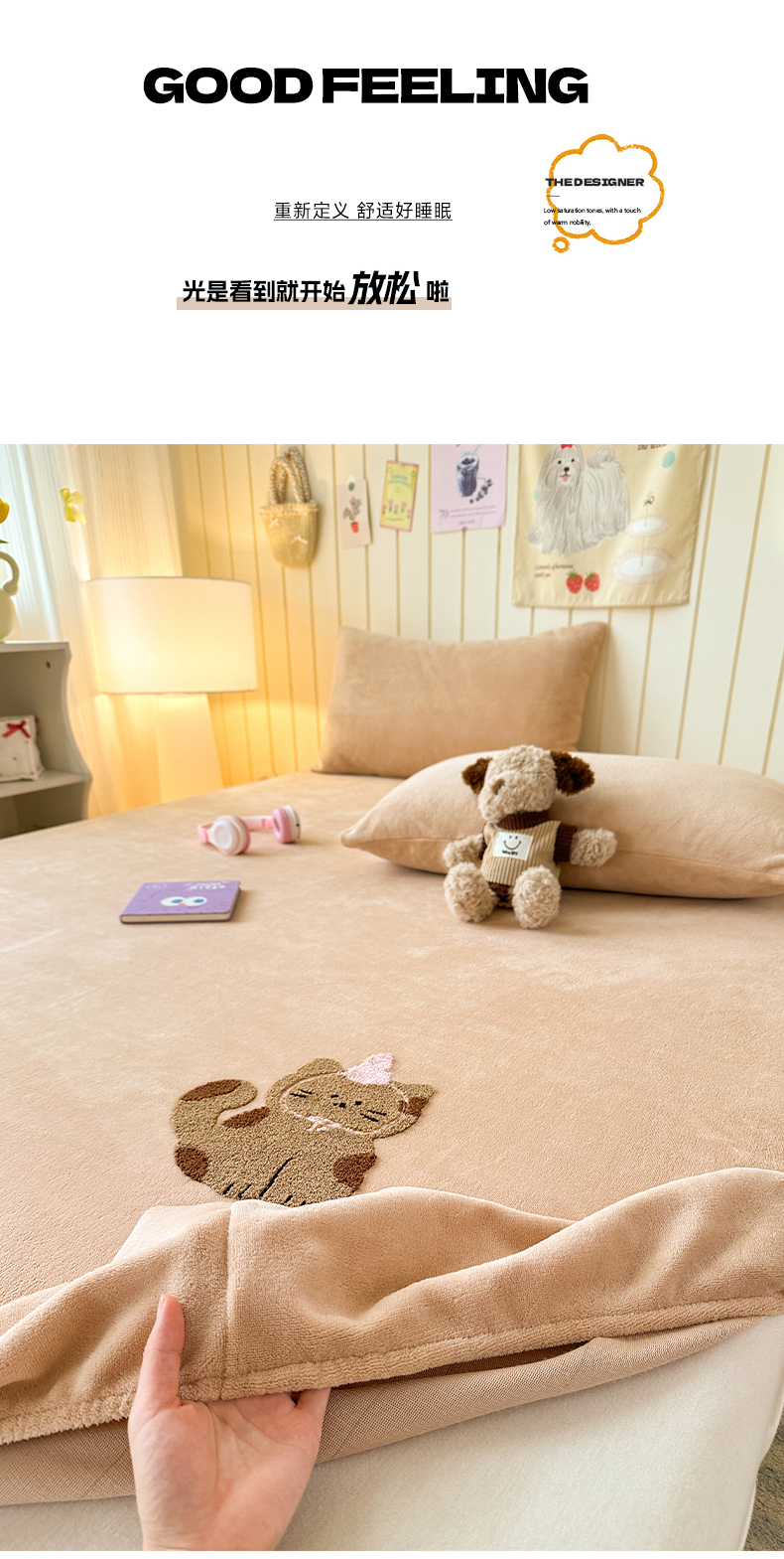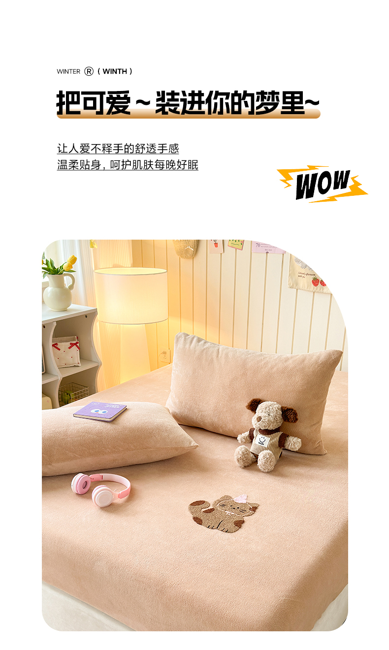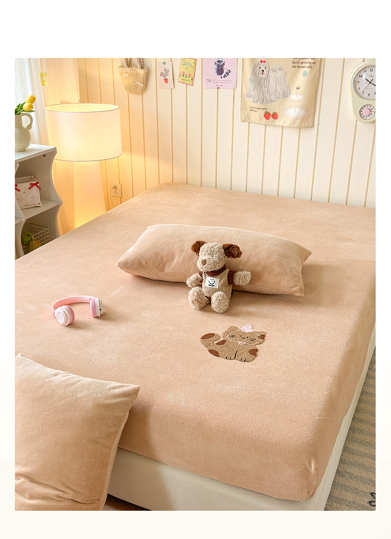 (总)云尚床笠 2026新款亲肤舒适毛巾绣牛奶绒加厚单床笠单品床笠单件床笠-卡通猫,卡通猫-鹅绒黄,卡通猫-小豹纹粉,卡通猫-云柔粉,卡通猫-小豹纹米,卡通猫-暖阳杏,卡通猫-高级灰