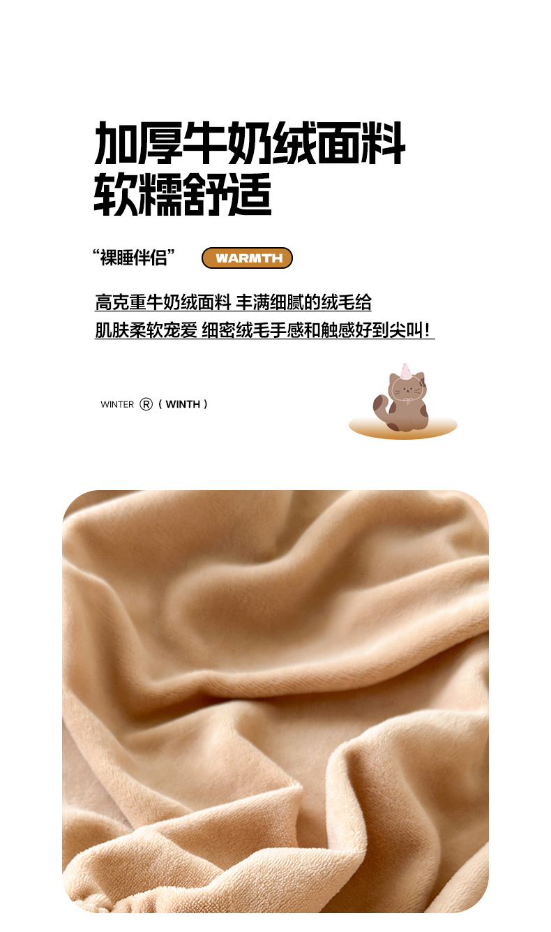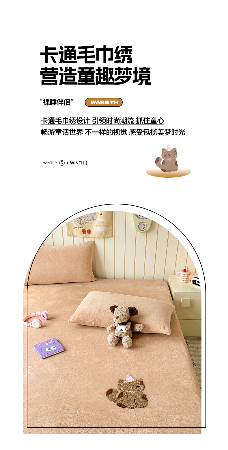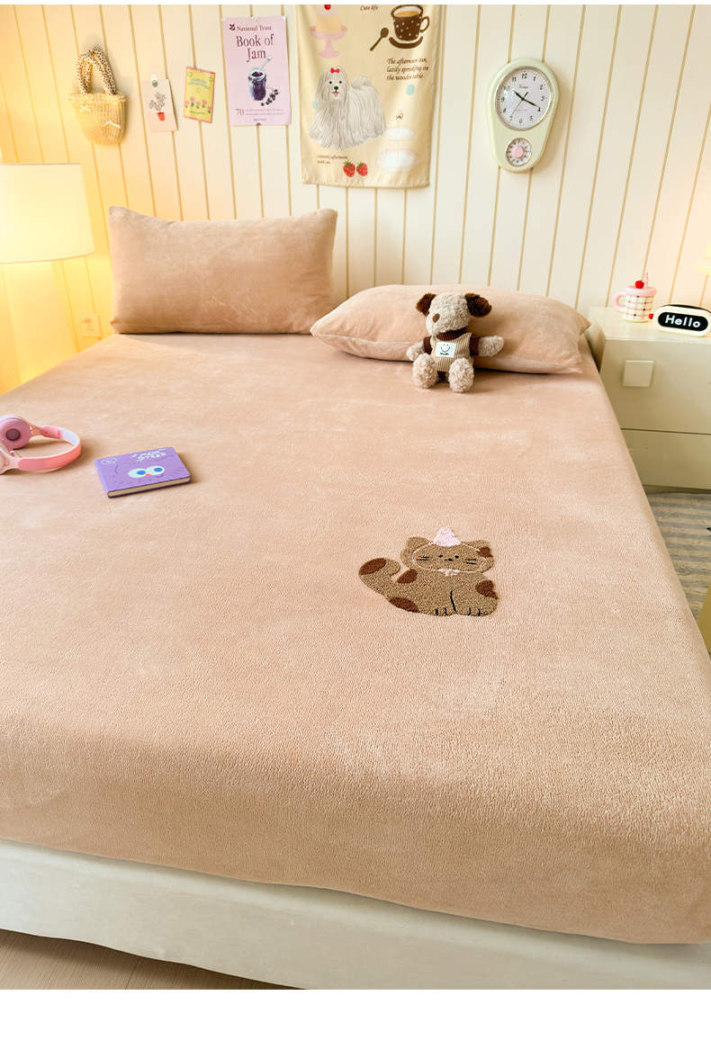 云尚床笠 2026新款亲肤舒适毛巾绣牛奶绒加厚单床笠单品床笠单件床笠-卡通猫 卡通猫-暖阳杏