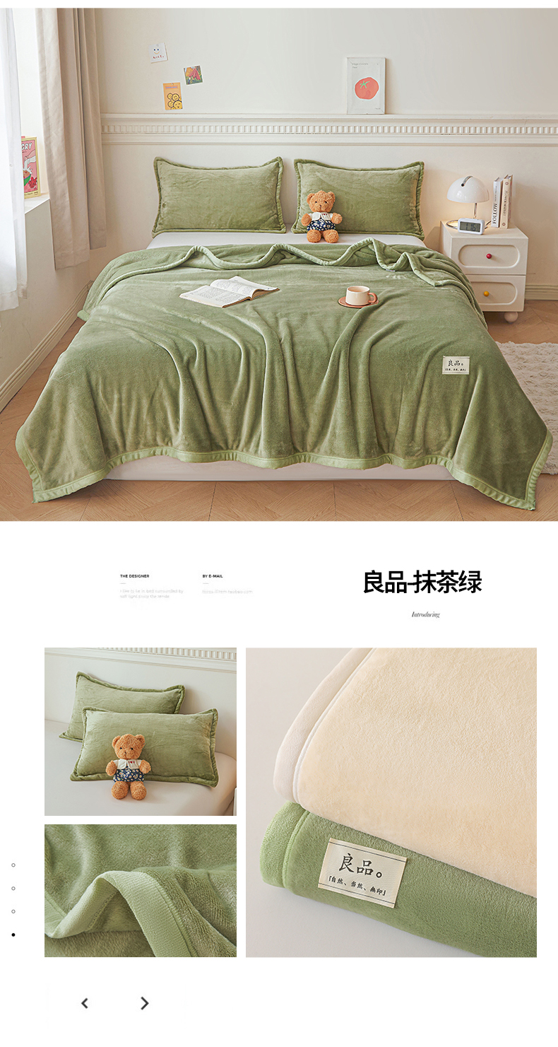 当前位置: 91家纺网 > 商品网购 > 毛毯休闲毯绒毯 > 毛毯 > 雅萱家纺 2024新款良品系列牛奶绒多功能毛毯盖毯 良品-抹茶绿
