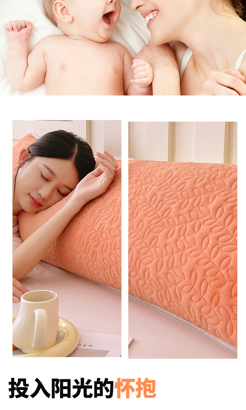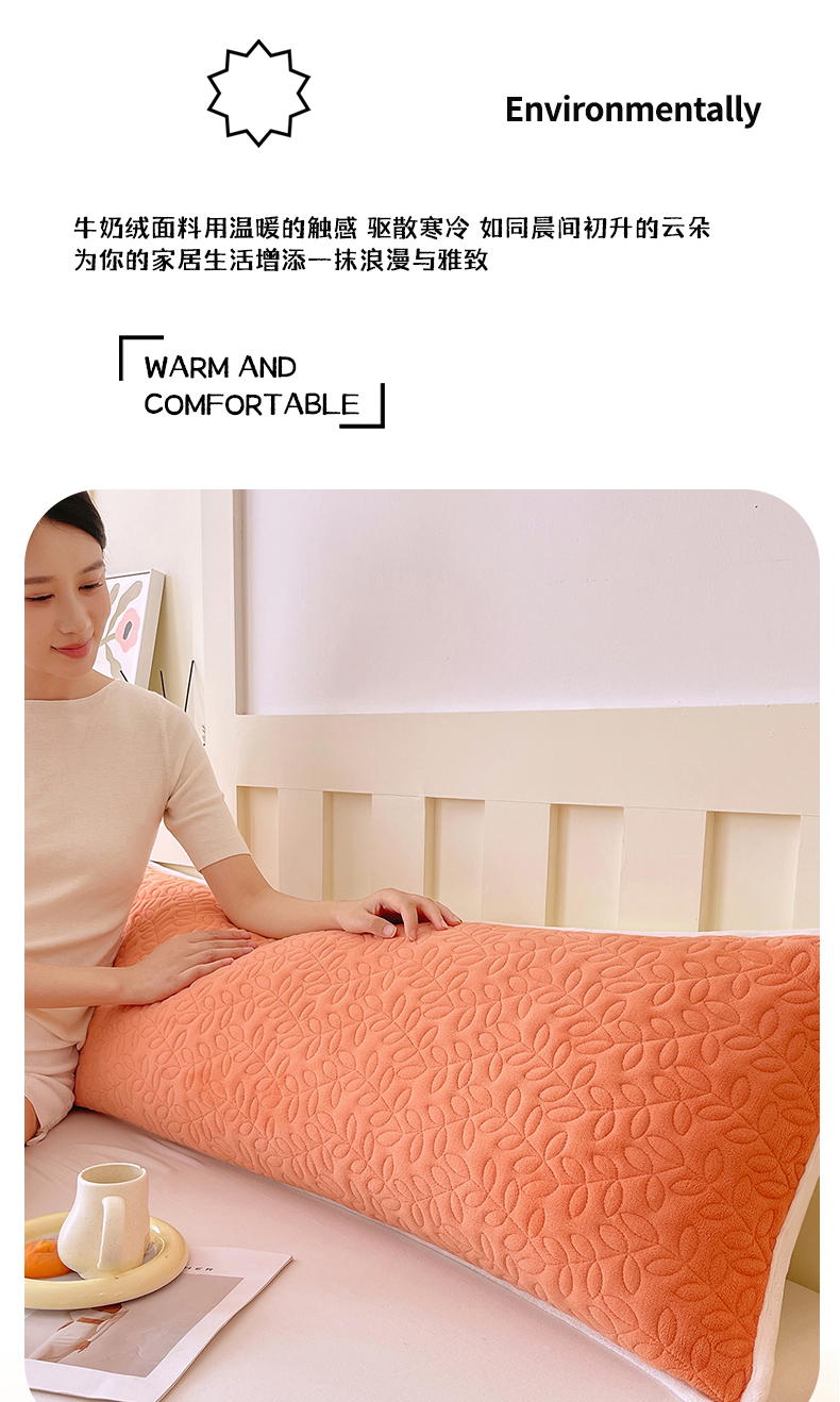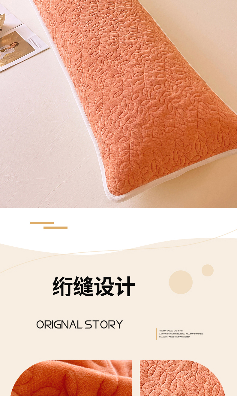 商品名称:雨彤家纺 2025新款牛奶绒夹棉包边长枕套 绒包边枕套-桔色