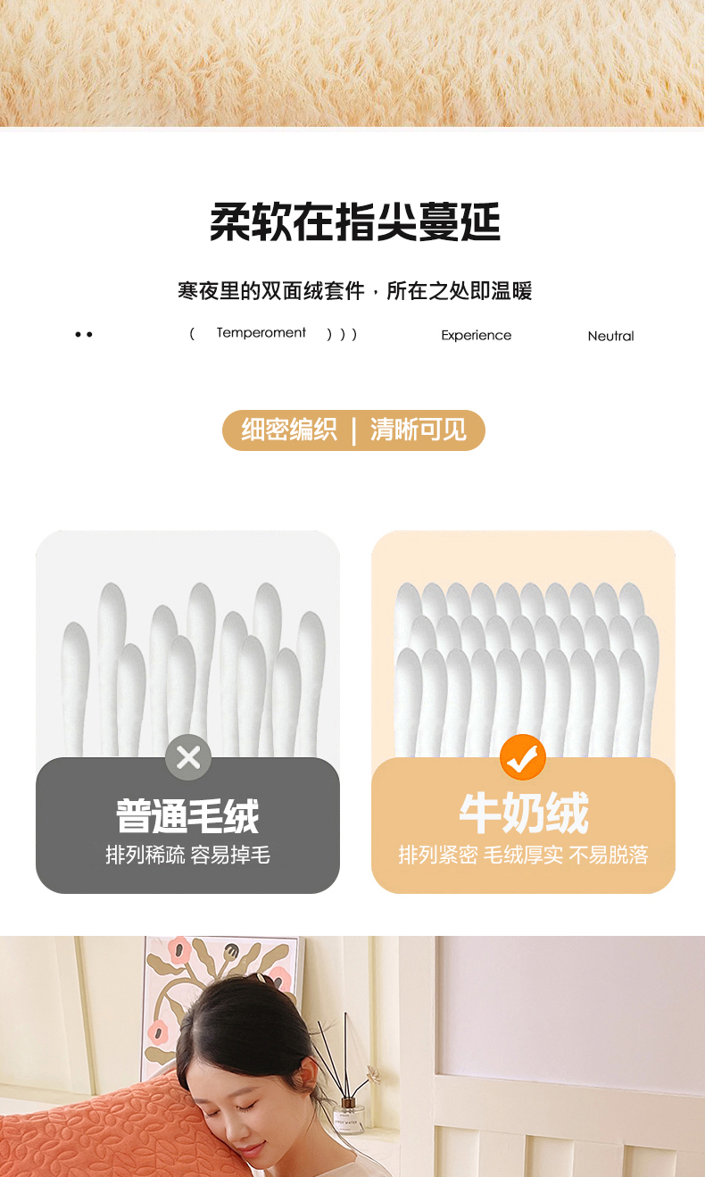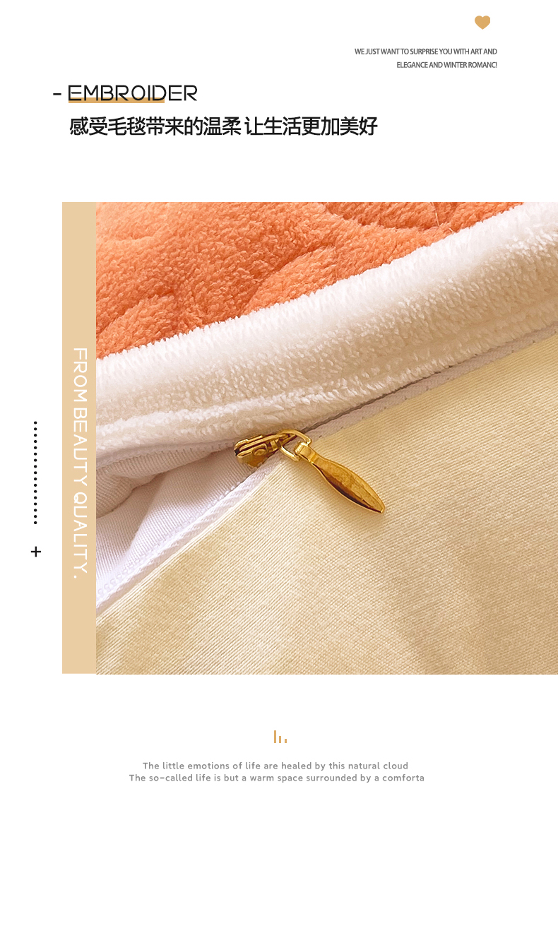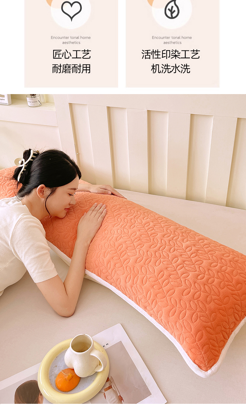 商品名称:雨彤家纺 2025新款牛奶绒夹棉包边长枕套 绒包边枕套-桔色