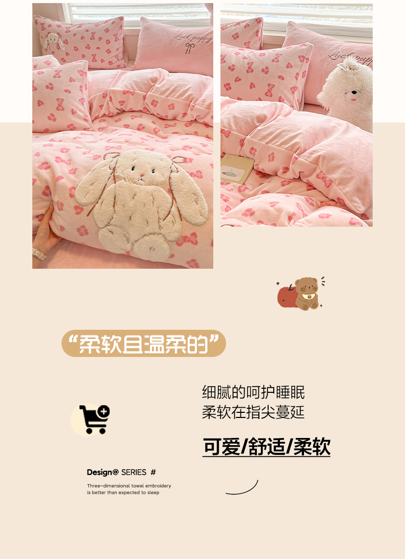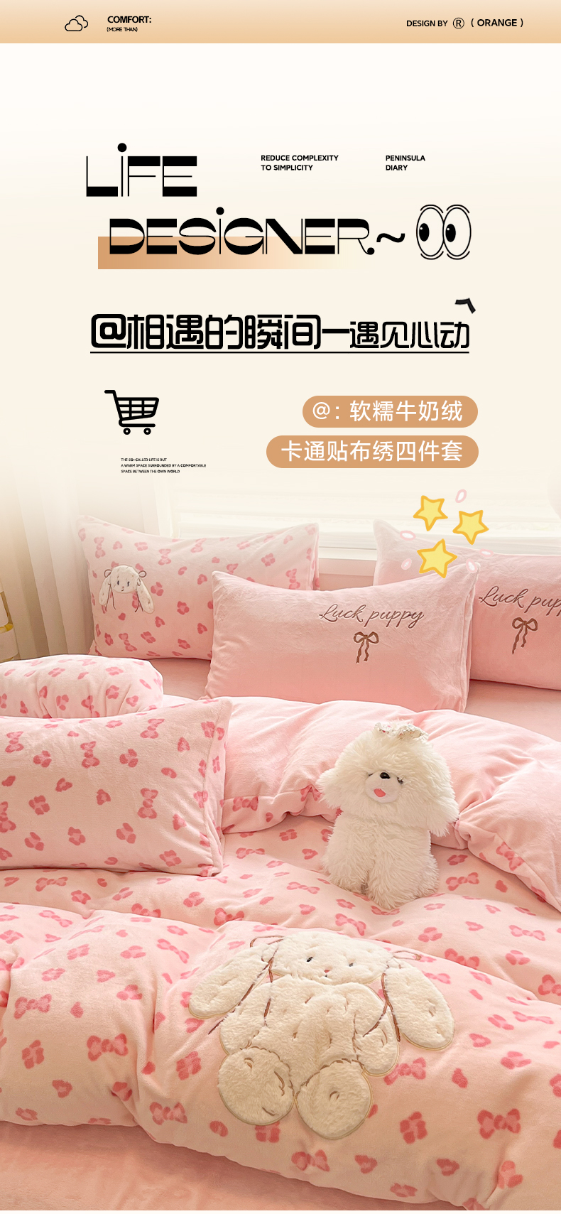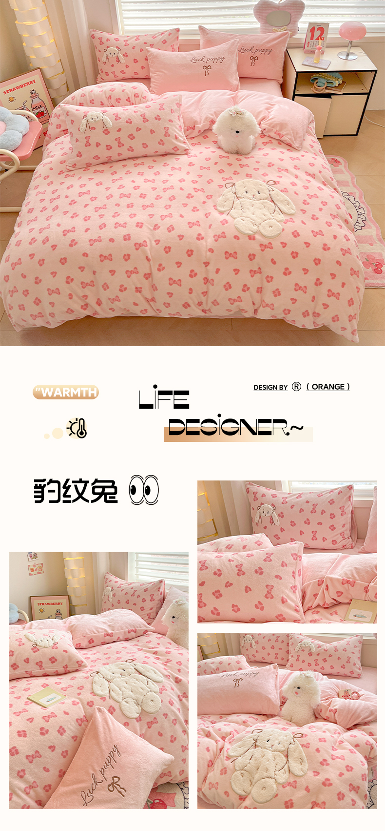 当前位置: 91家纺网 > 商品网购 > 床品套件 > 四件套 > 牛奶绒四件套 > 如一 2025新款高克重卡通贴布绣牛奶绒四件套 豹纹兔