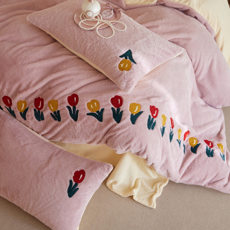 (总)初拾 2025新款亲肤舒适兔毛牛奶绒毛巾绣四件套-郁金香花海 (会员减20 控价:淘宝券后不低于298元 直播不低于298元),郁金香花海- 粉,郁金香花海-白绿,郁金香花海-青青绿