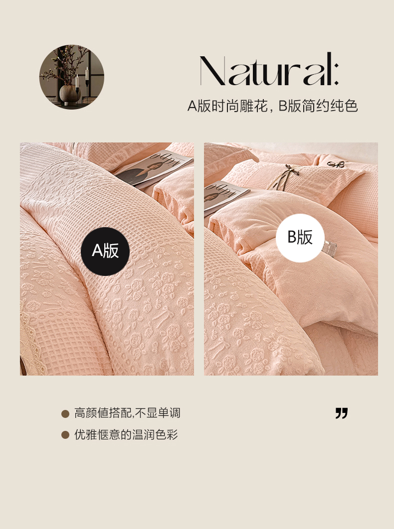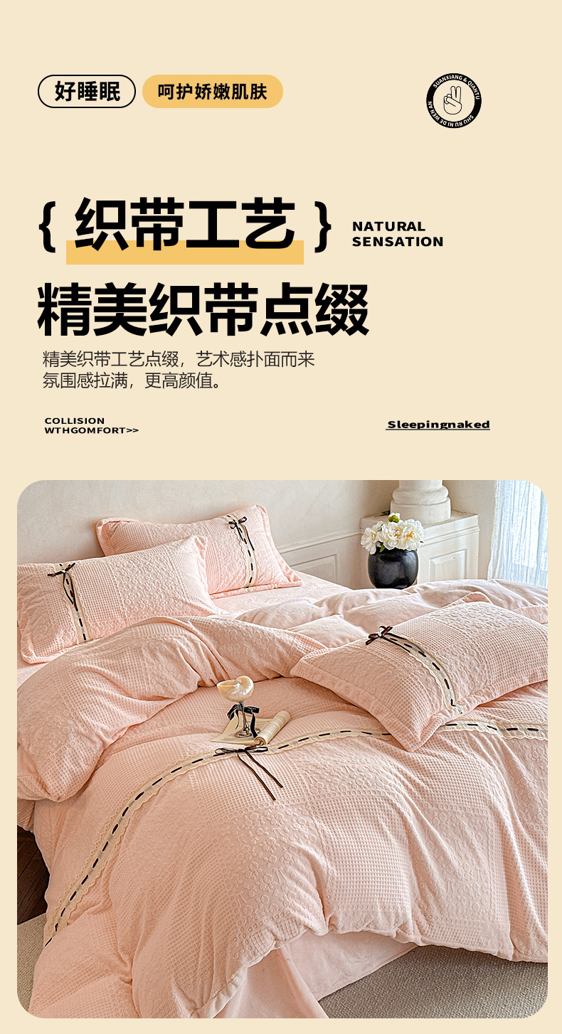 (总)叠派家纺 2025新款高克重高端牛奶绒雕花织带工艺款梦巢系列四件套(直播热款)提供买家秀,梦巢-星空蓝,梦巢-金典灰,梦巢-麦卡其,梦巢-玉粉,送精美手提包装