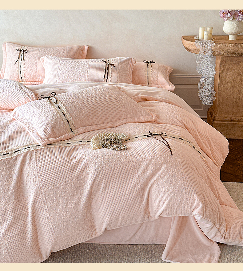 叠派家纺 2025新款高端雕花公主风蝴蝶结工艺款四件套绿野仙踪系列(直播热款)提供买家秀 绿野仙踪-仙女粉