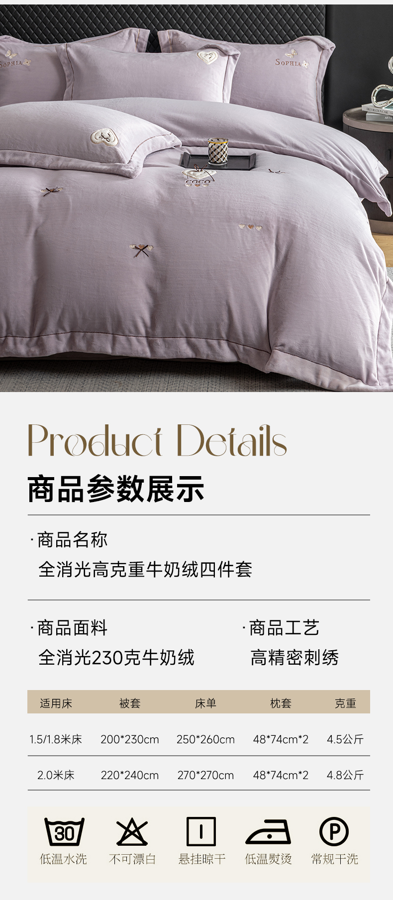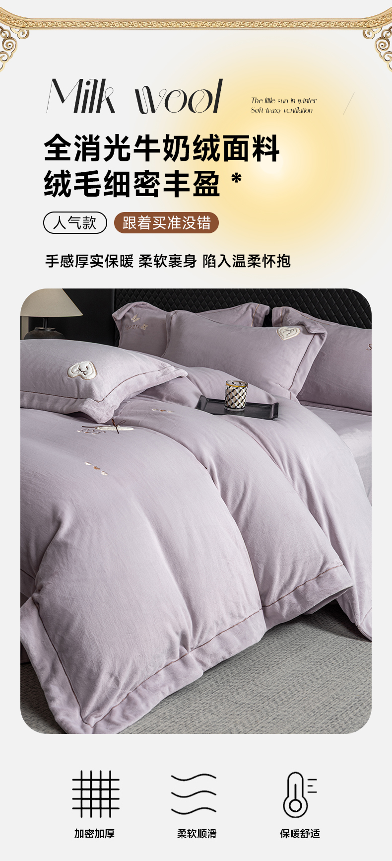 商品名称:魅都 2025新款冬季全消光超柔高克重牛奶绒四件套-COCO COCO-幸运紫
