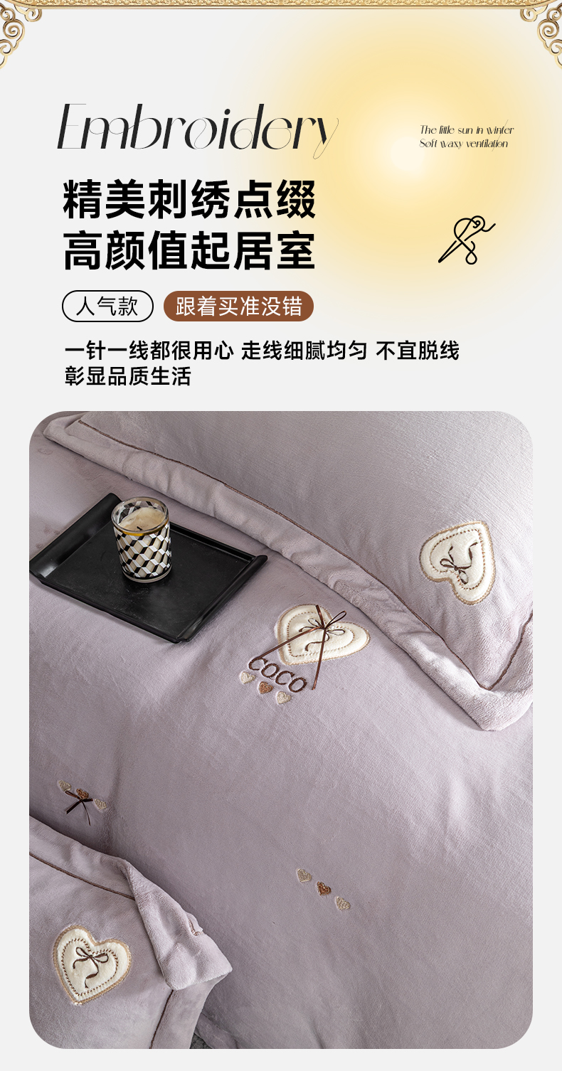 (总)魅都 2025新款冬季全消光超柔高克重牛奶绒四件套-COCO,COCO-浅米咖,COCO-幸运粉,COCO-幸运紫