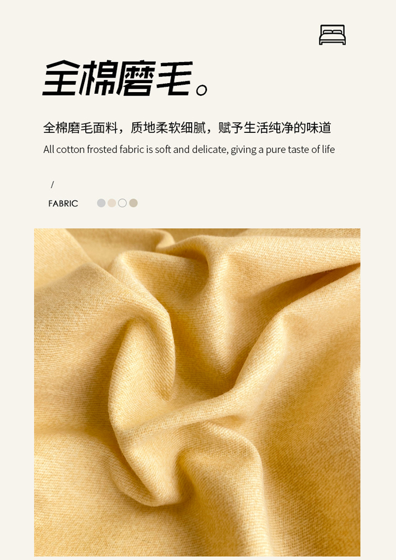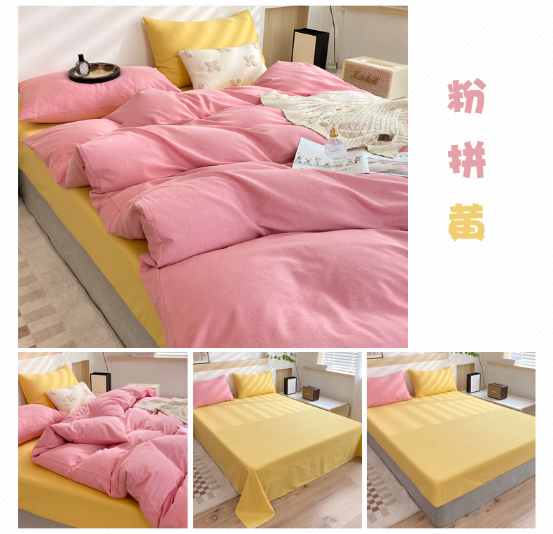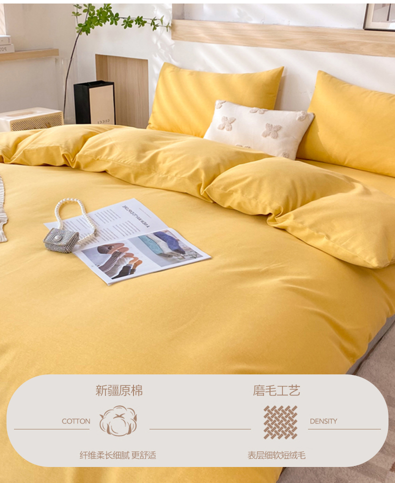 商品名称:玉元坊 2025新款混纺非全棉加厚磨毛四件套 黄色