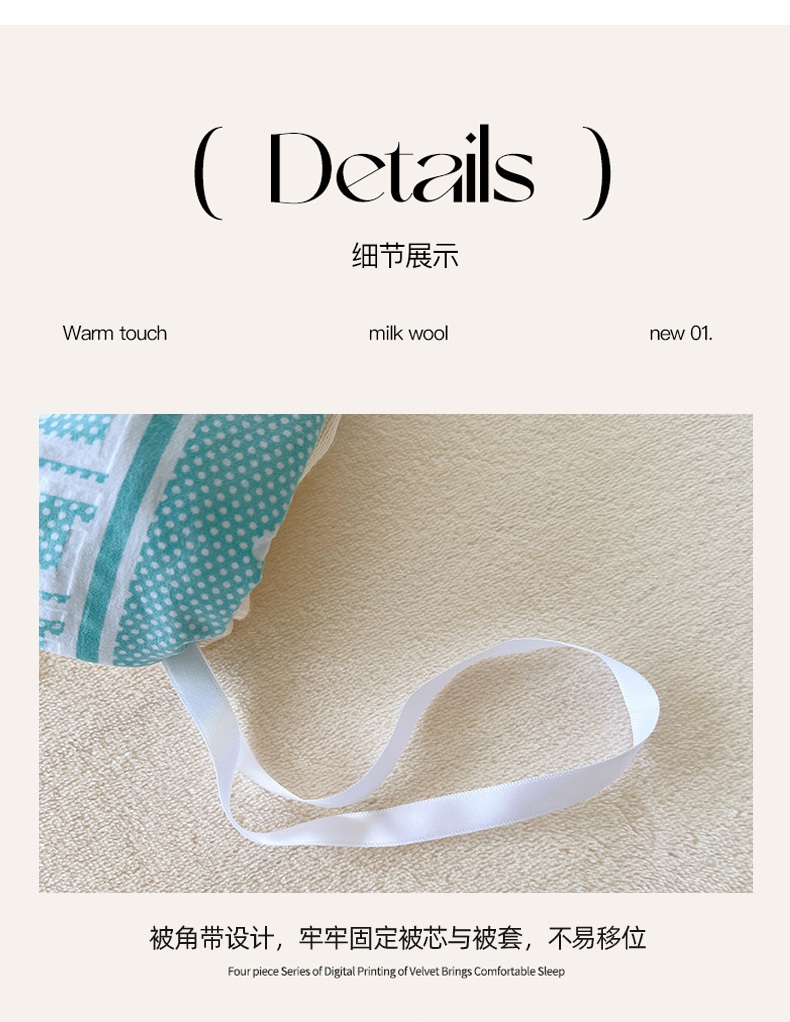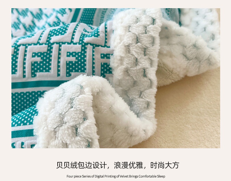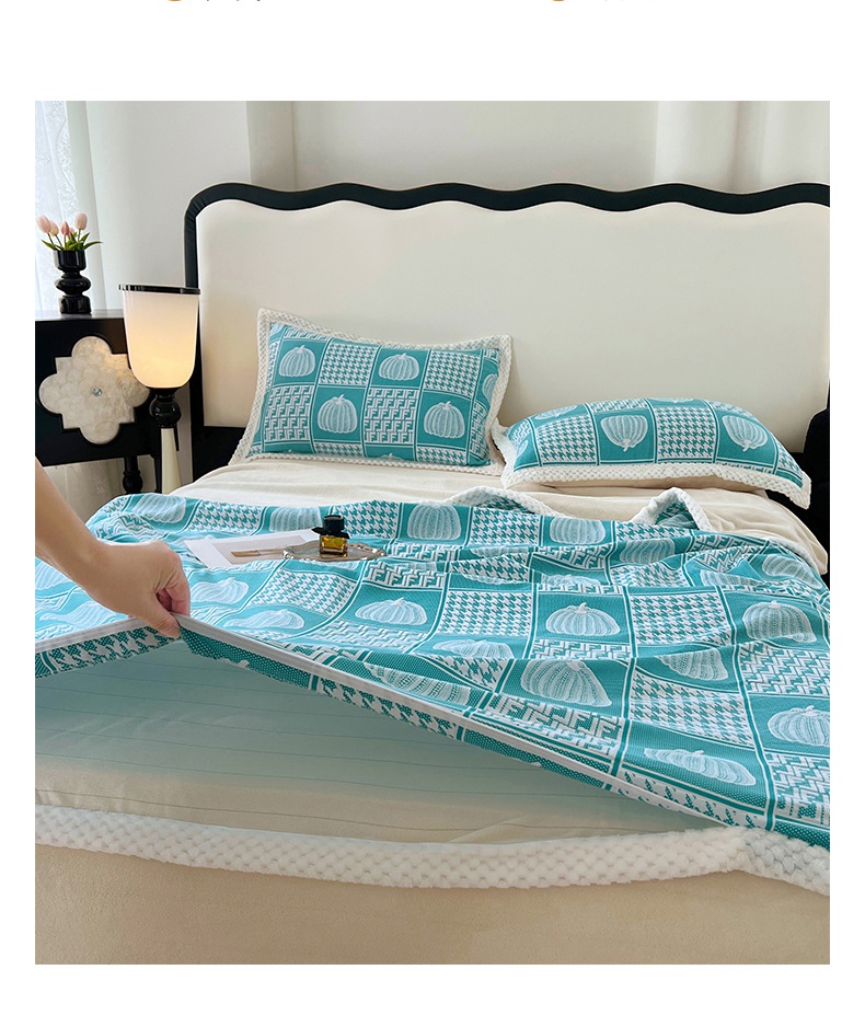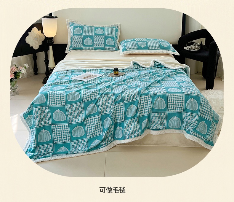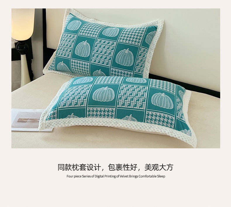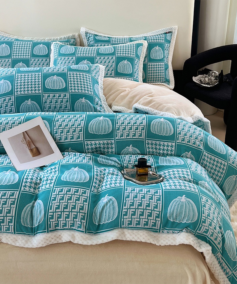 yyds网供 2025新款棉加绒四件套多功能盖毯被套牛奶绒四件套床单款-南瓜 蓝梦南瓜