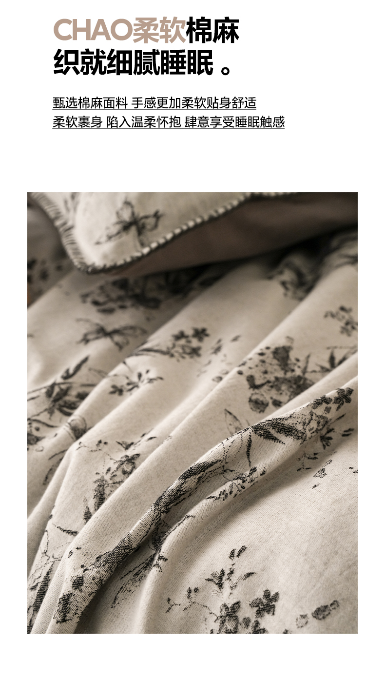 (总)卡巴伦 2025新款棉麻提花床盖三件套,繁花梦境,老钱花,四叶花,叶叶情丝