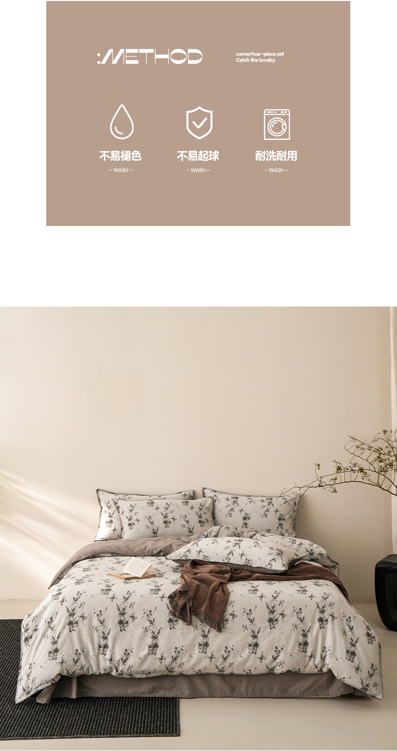 (总)卡巴伦家纺 2025新款全棉超细旦磨毛刺绣拼接四件套-旷野(会员:-20元 控价:358元),旷野-白,旷野-灰,旷野-咖,旷野-紫