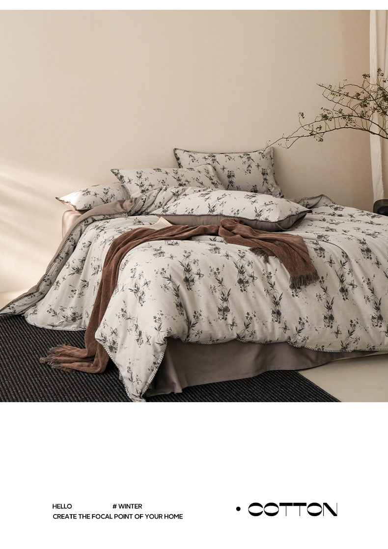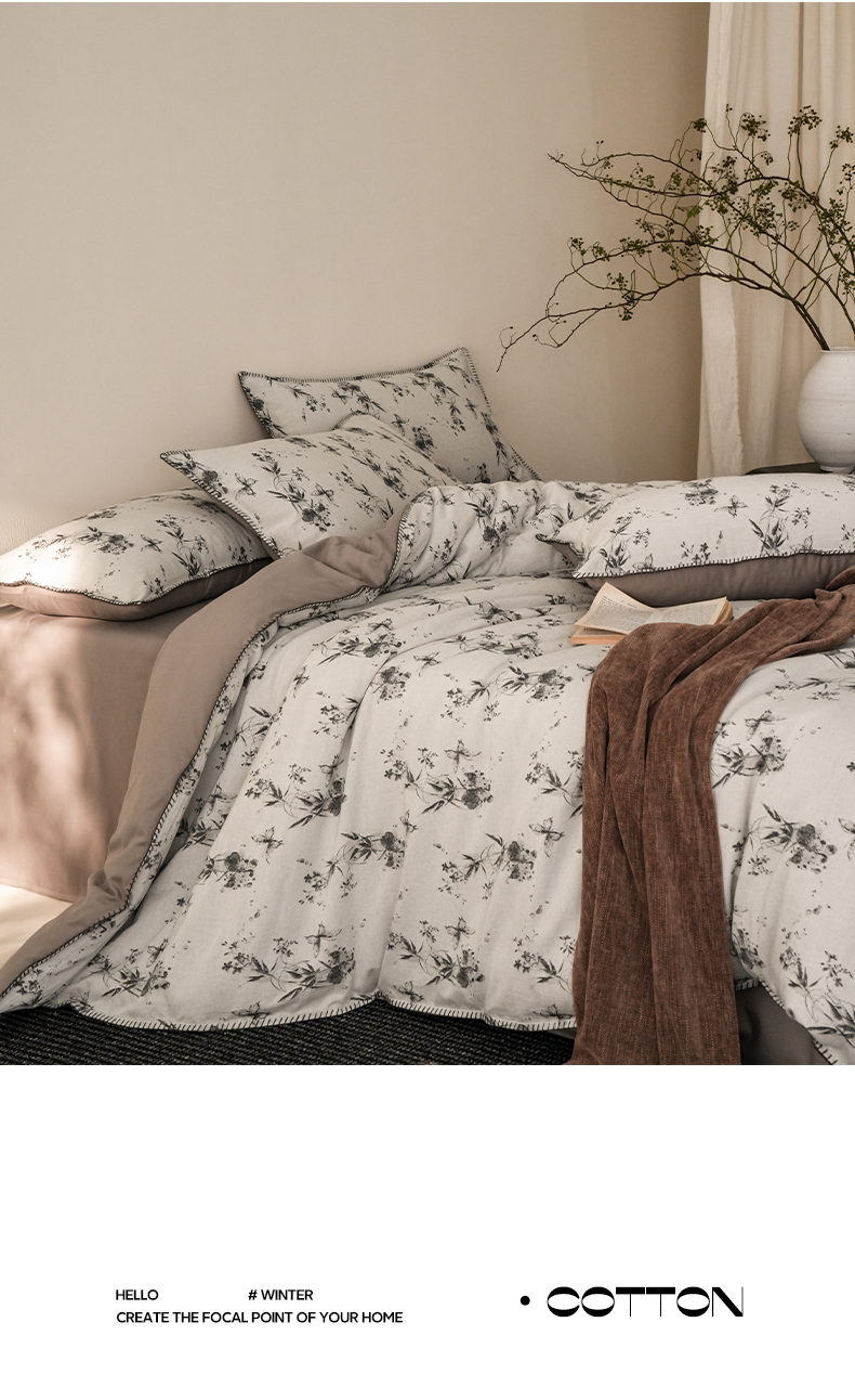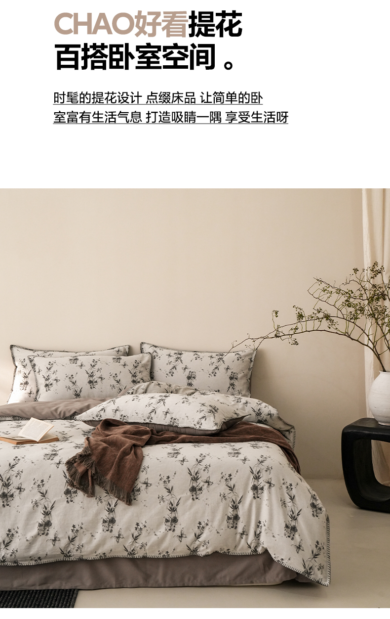 (总)卡巴伦家纺 2025新款全棉双层皱皱纱现代中古风数码四件套,细雨汀花-红,椿山集,蝴蝶剪影-蓝,蝴蝶剪影-棕,花弄影-黑,花弄影-绿,细雨汀花-米,细雨汀花-紫,枝瑶,织兮,竹影
