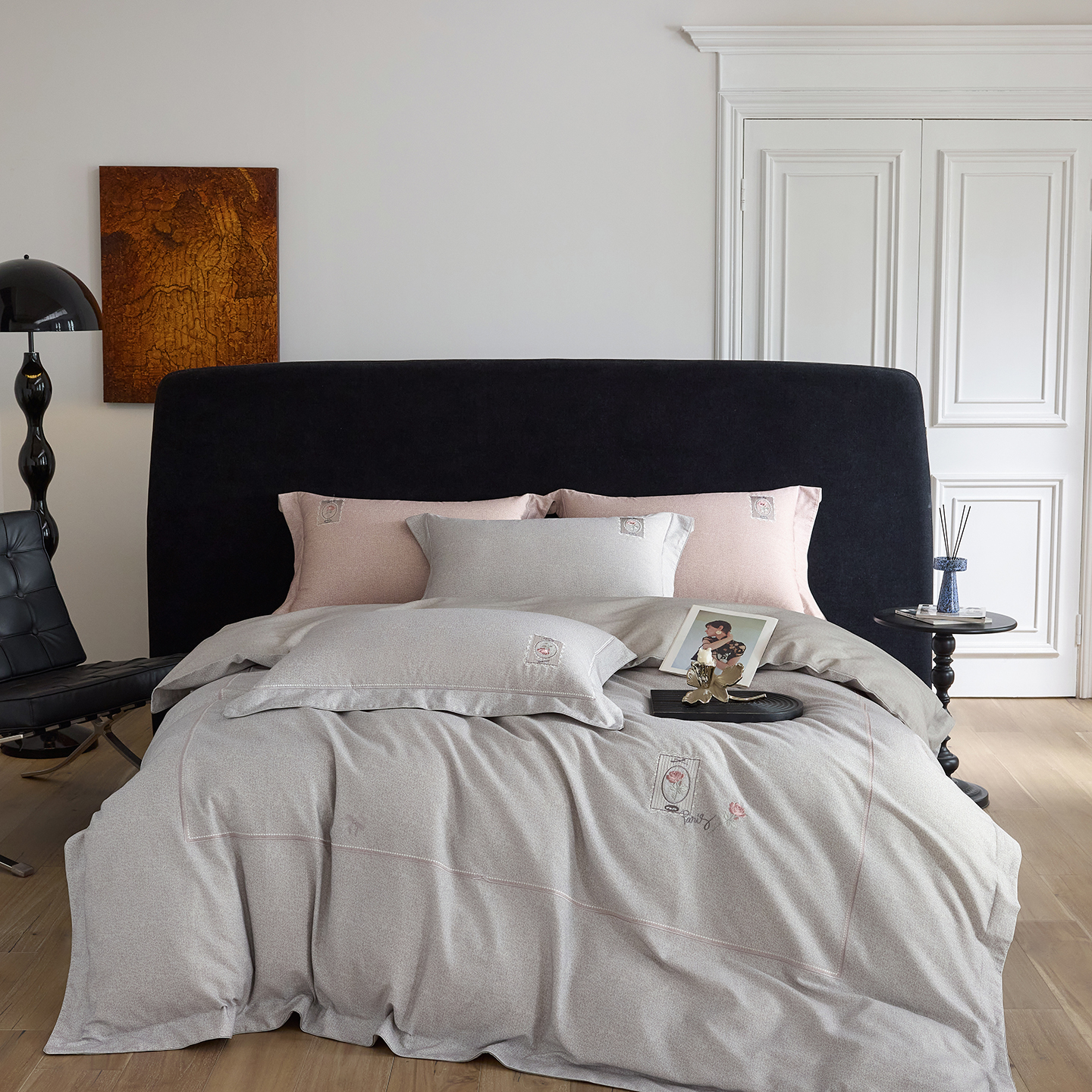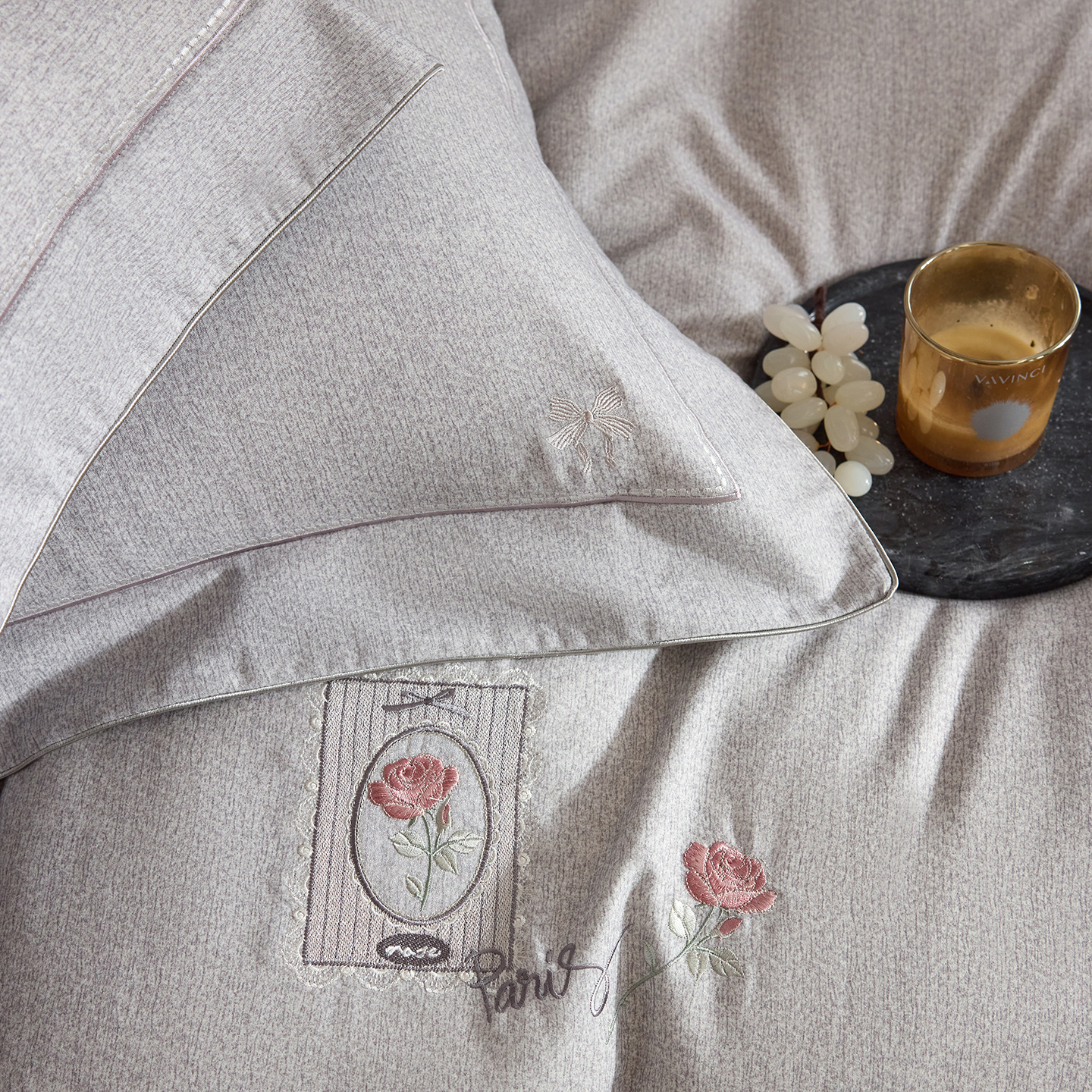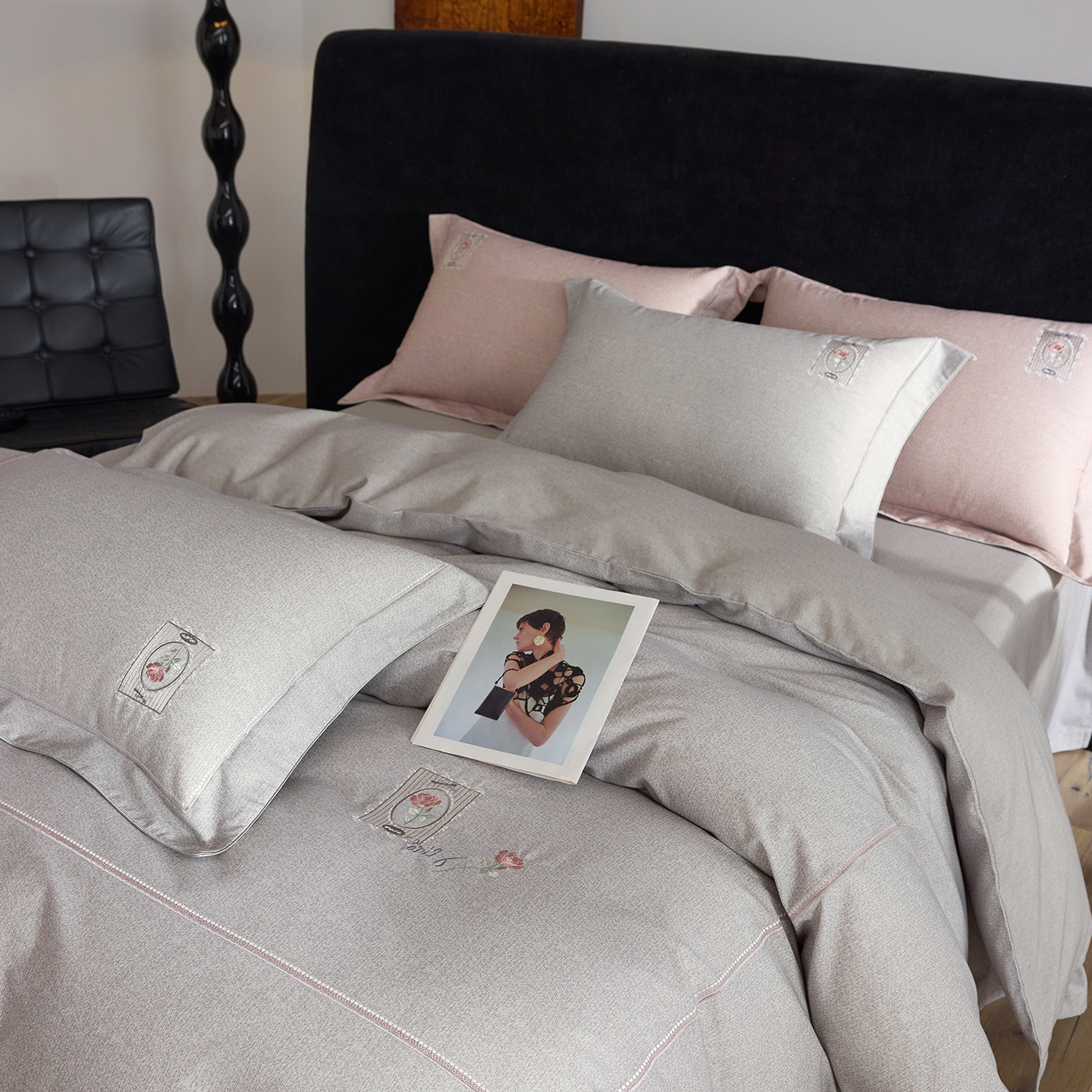 (总)榻尚家居 2025秋冬新品纯棉贡缎磨毛绣花工艺款四件套-盛夏玫瑰 (控价:398),盛夏玫瑰 粉色,盛夏玫瑰 灰,盛夏玫瑰 杏紫色