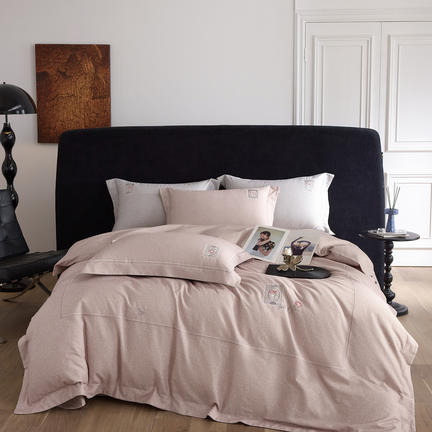 (总)榻尚家居 2023新款纯棉贡缎提花四件套(会员-10),缤兰,烟粉