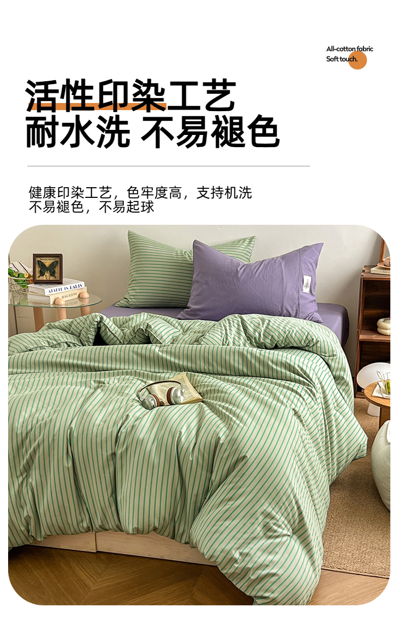 (总)优选良品 2025新款韩式无印风水洗棉拼色学生三件套床单床笠款四件套,条纹卡其+深红,条纹水蓝+咖啡,条纹香芋紫+深紫,条纹抹茶绿+酱紫,条纹海洋蓝+深蓝,组合,条纹柠檬黄+咖啡