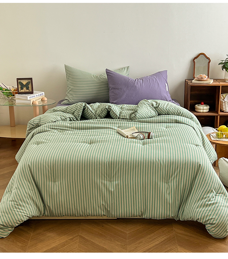 商品名称:优选良品 2025新款冬被水洗棉被子被芯 条纹绿+酱紫
