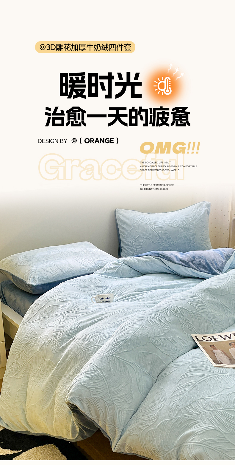 (总)如一 2025年3D立体雕花牛奶绒四件套,芭蕉叶-白咖,花漾-粉,编织纹-天蓝,繁花-粉,编织纹-白咖,缤纷-粉,编织纹-白橘,繁花-天蓝,花漾-黄,华夫格白,华夫格黄,肌理纹-杏,千鸟格粉,千鸟格灰,编织纹-粉,编织纹-灰,芭蕉叶蓝,编织纹-蓝灰