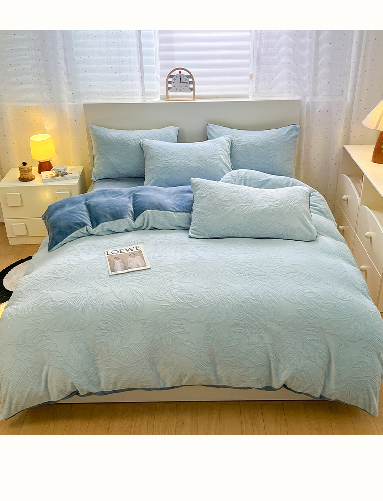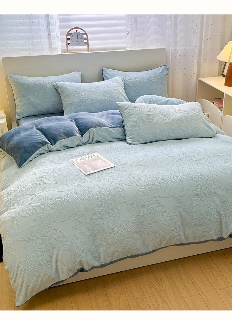 如一 2025新款3D雕花牛奶绒单被套 芭蕉叶-蓝