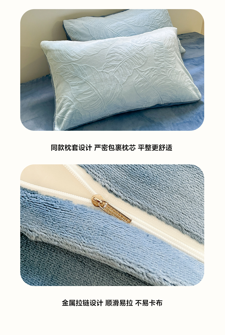 商品名称:如一 2025新款3D雕花牛奶绒单被套 芭蕉叶-蓝