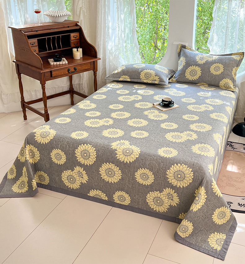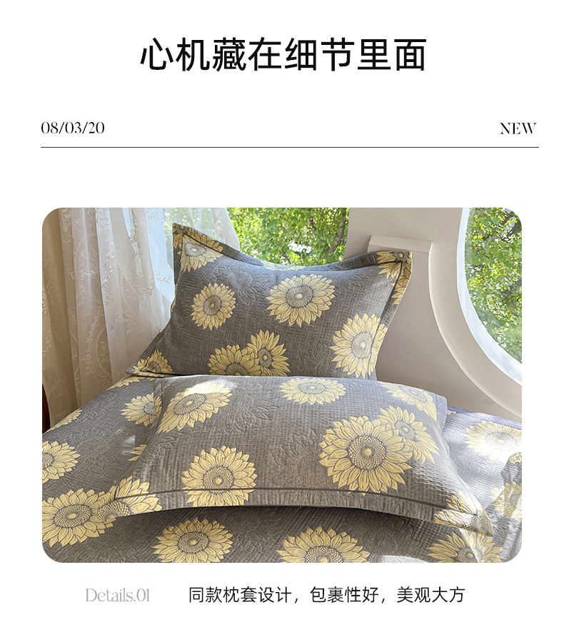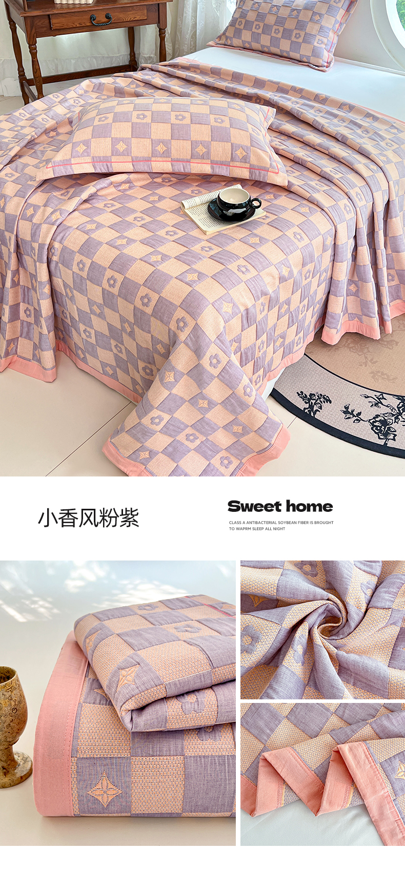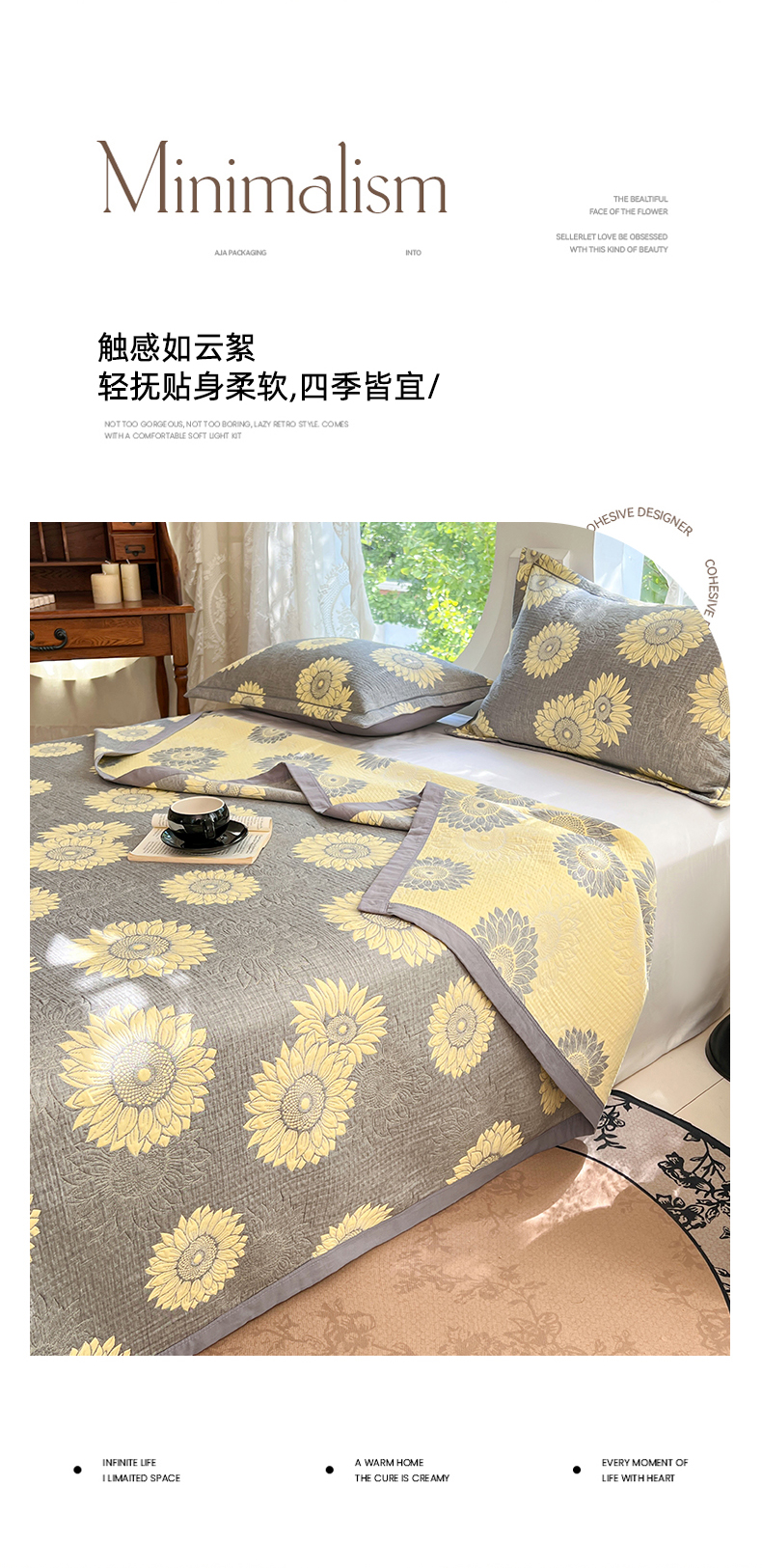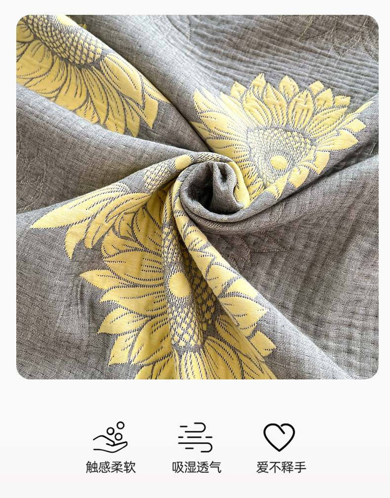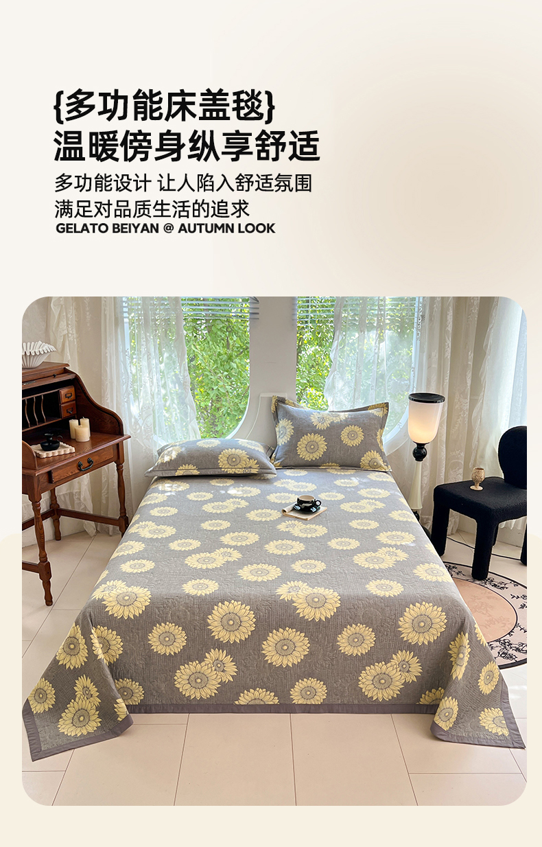商品名称:yyds网供 2025新款A类色织全棉三层纱布床盖三件套喷气夹棉盖毯夏被厚床单多功能榻榻米风格二 暖阳灰黄