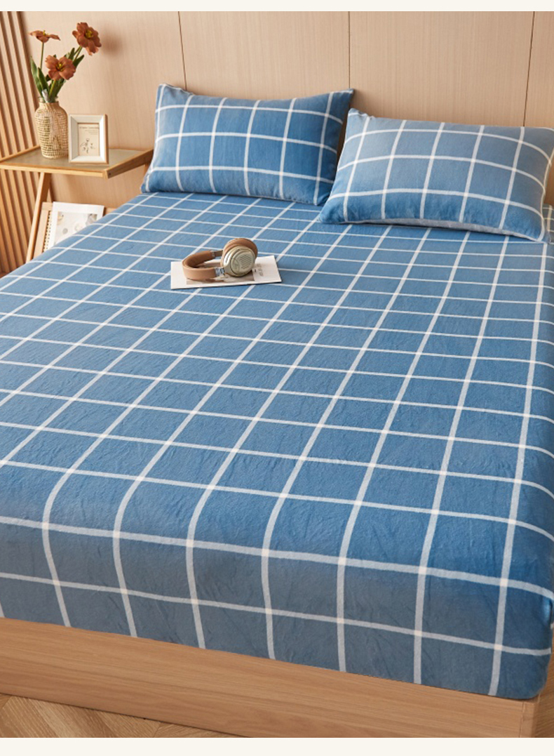 一禾 2025新款简约印花高克重牛奶绒床笠 维卡蓝