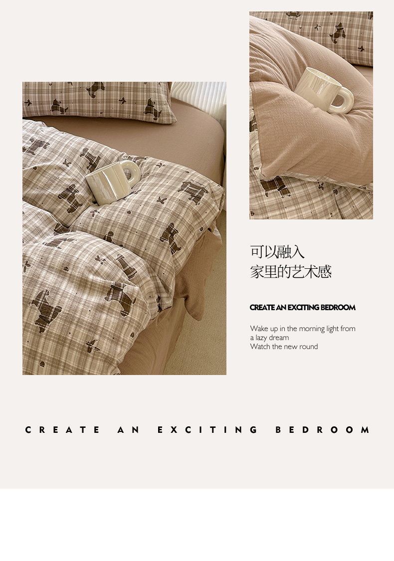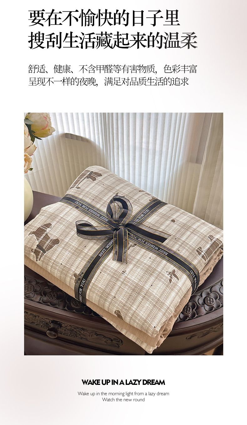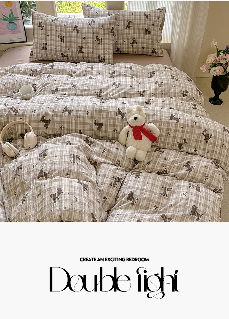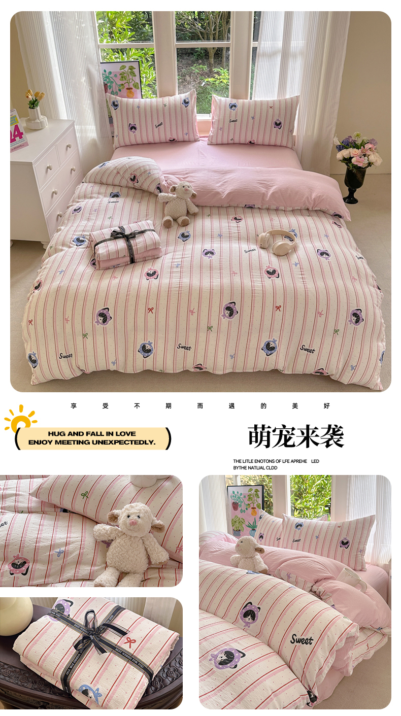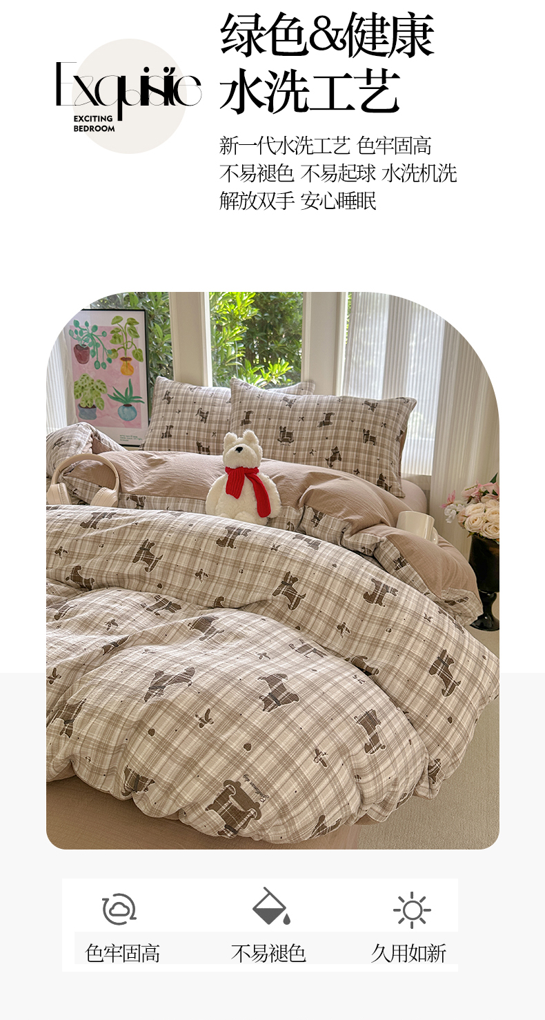 当前位置: 91家纺网 > 商品网购 > 床品套件 > 四件套 > 化纤普通四件套 > 桔禾家纺 2025新款小清新水洗棉有氧双层纱印花云感木棉皱皱纱四件套 巧克力饼干
