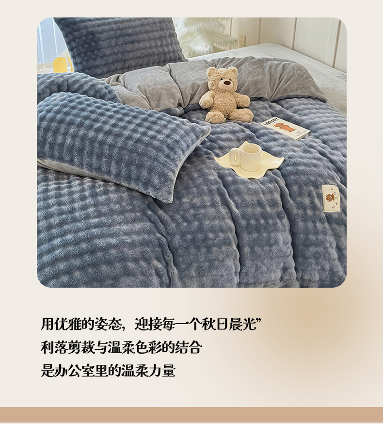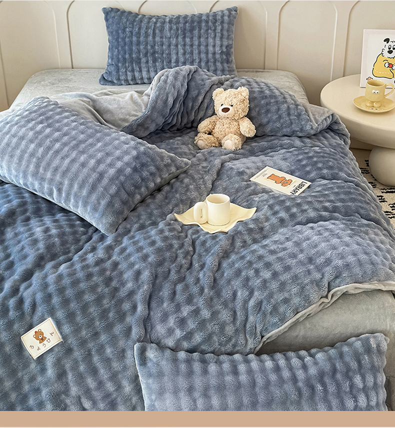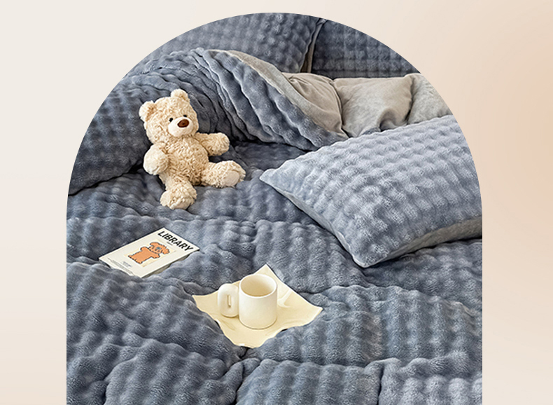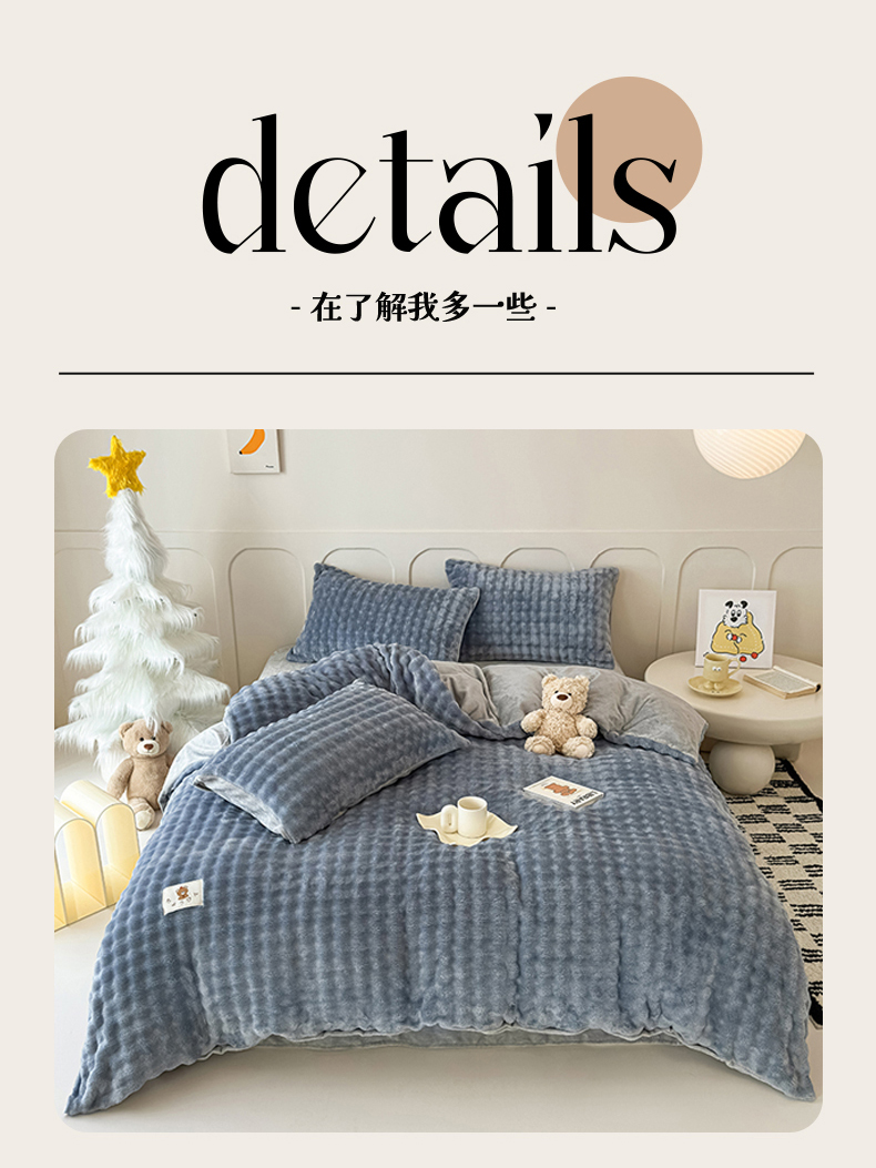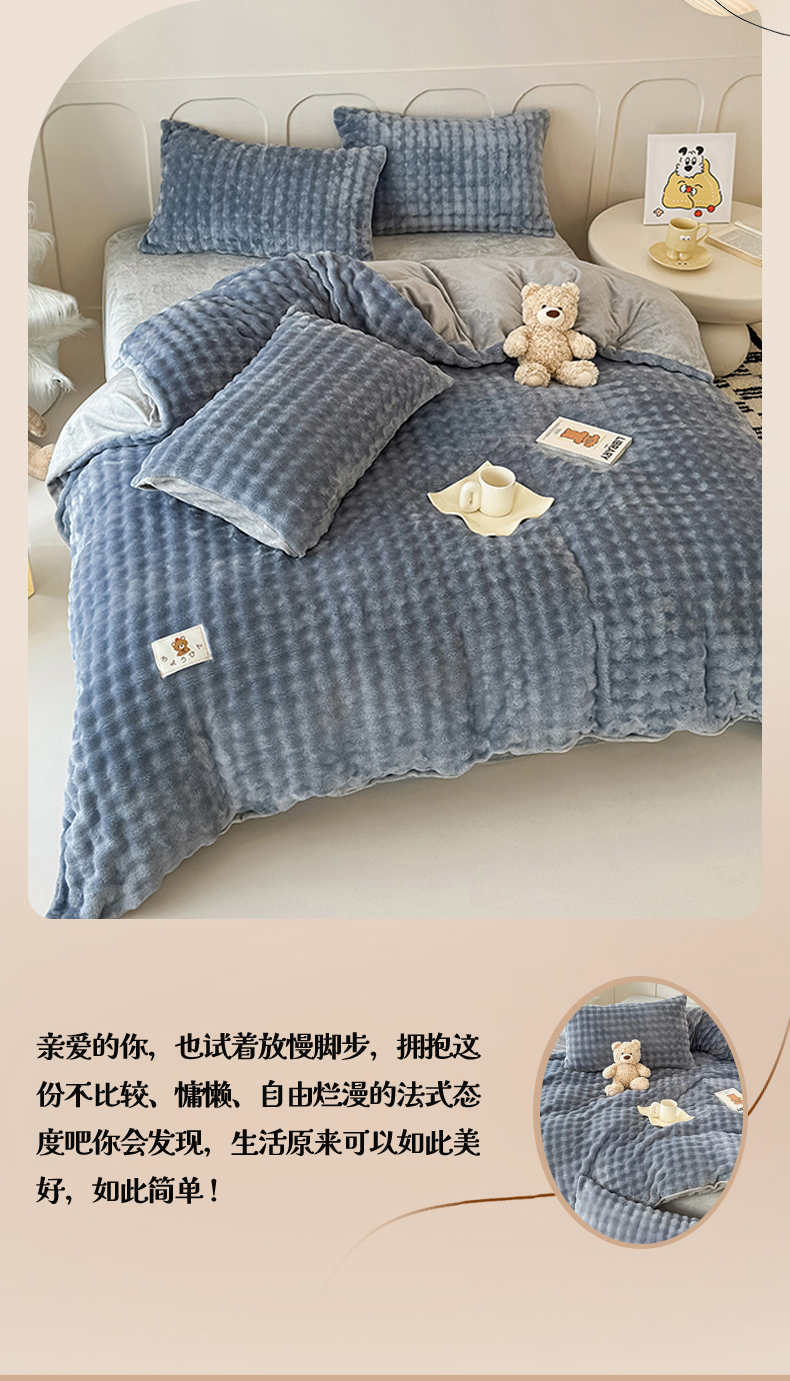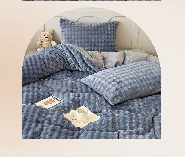 当前位置: 91家纺网 > 商品网购 > 床品套件 > 四件套 > 兔毛绒四件套 > 宜派家纺 2025新款A类简约高克重泡泡兔毛绒四件套 泡泡-雾蓝