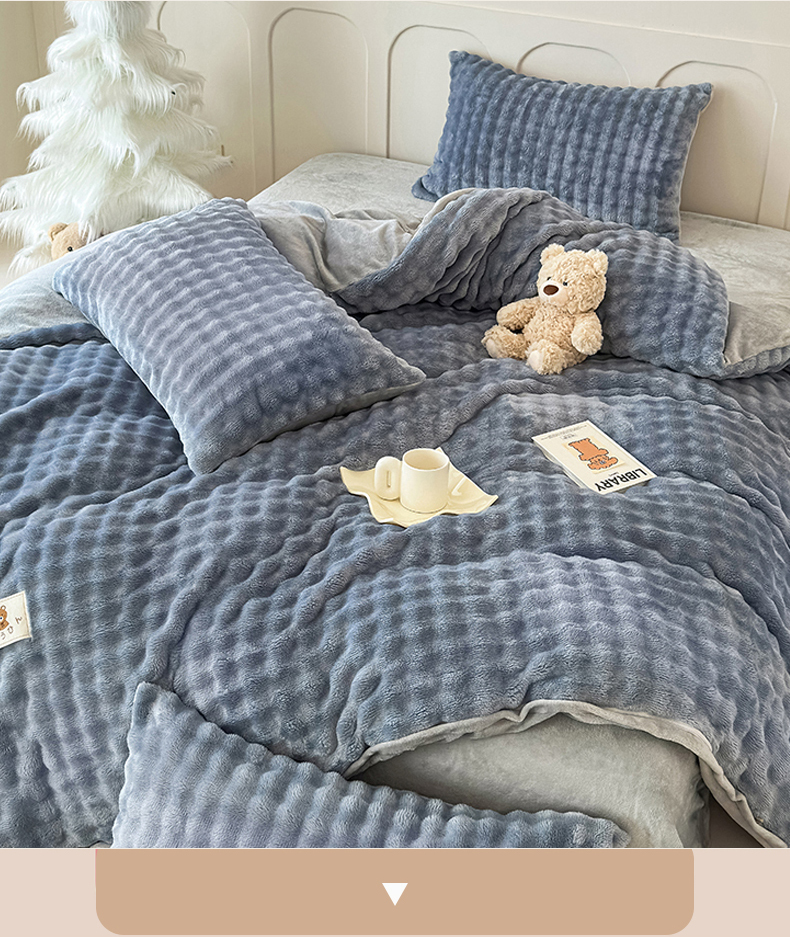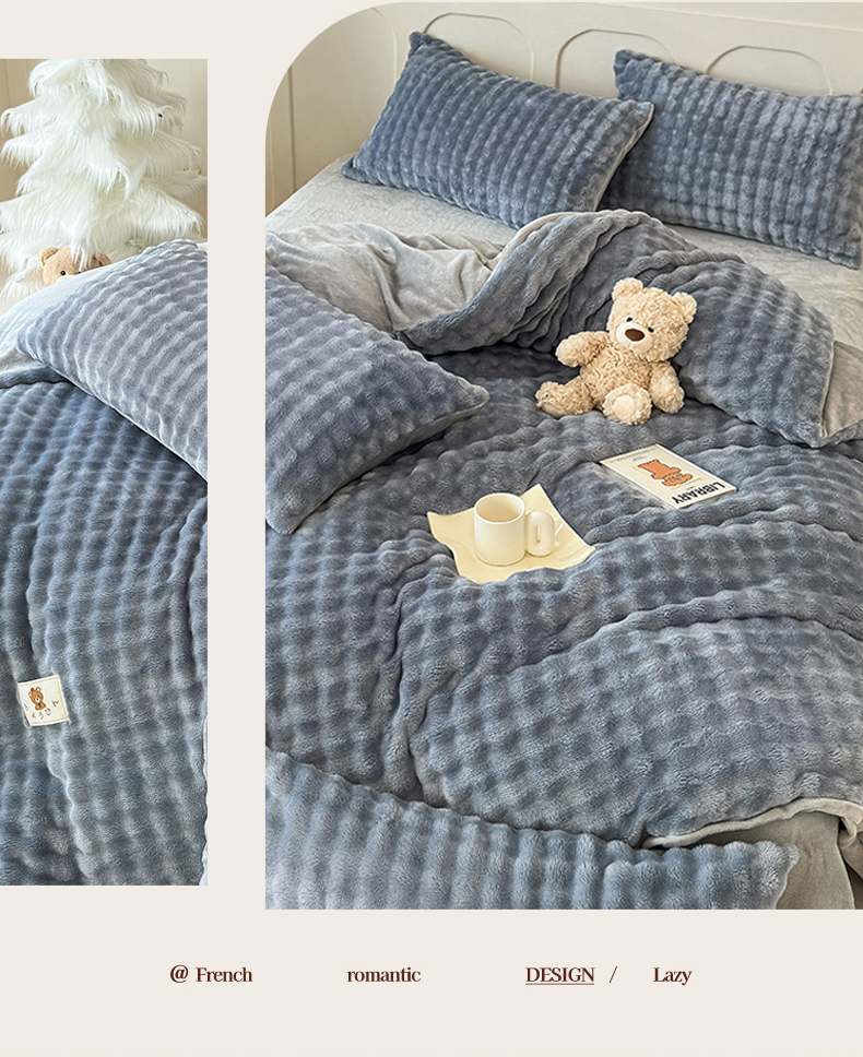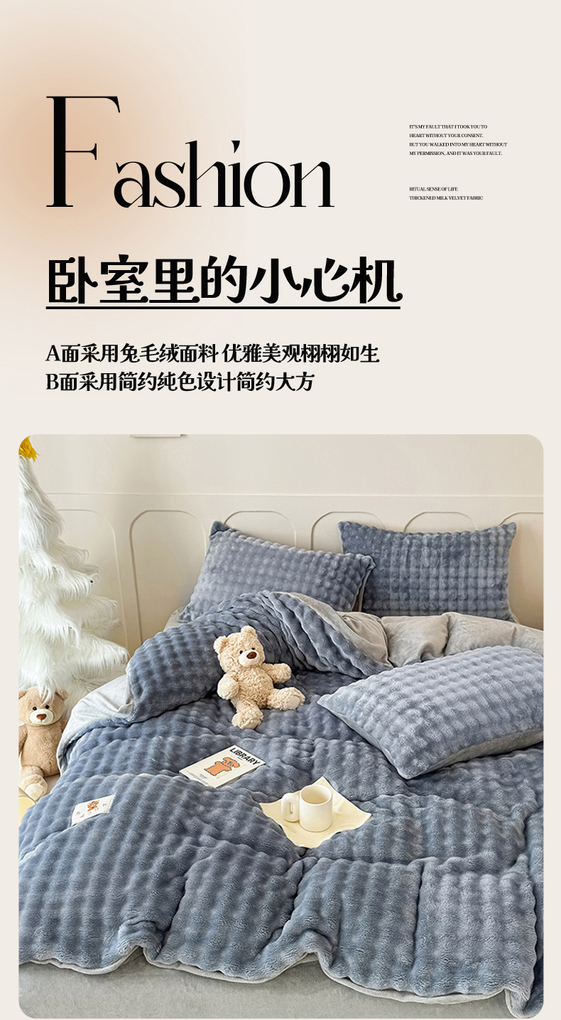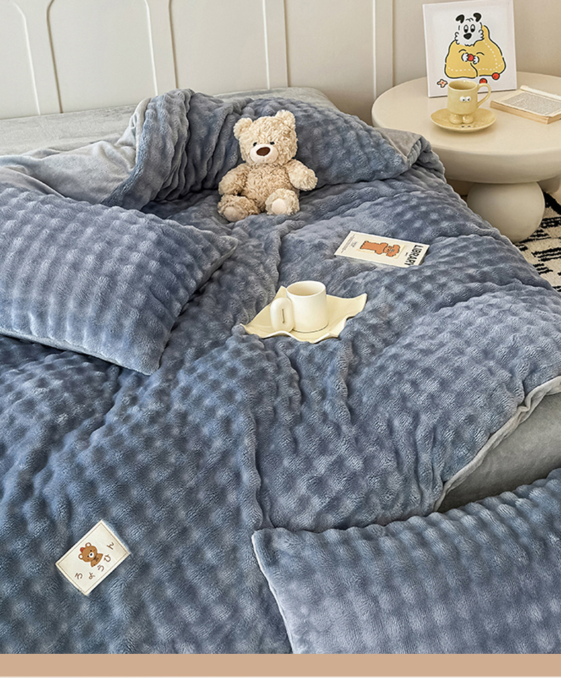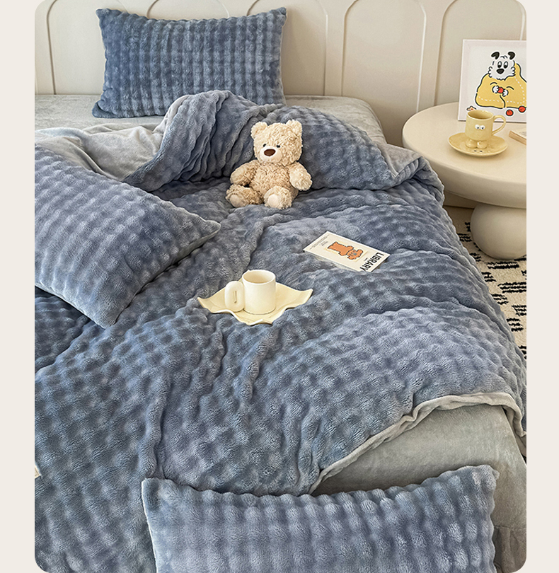 当前位置: 91家纺网 > 商品网购 > 床品套件 > 四件套 > 兔毛绒四件套 > 宜派家纺 2025新款A类简约高克重泡泡兔毛绒四件套 泡泡-雾蓝