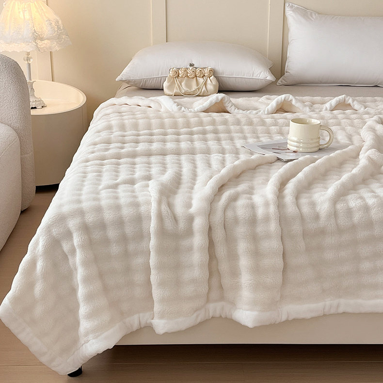 (总)默忆 2025新款A类保暖加厚仿兔毛毯毯子,米白,粉,咖色,蓝灰,绿,紫色