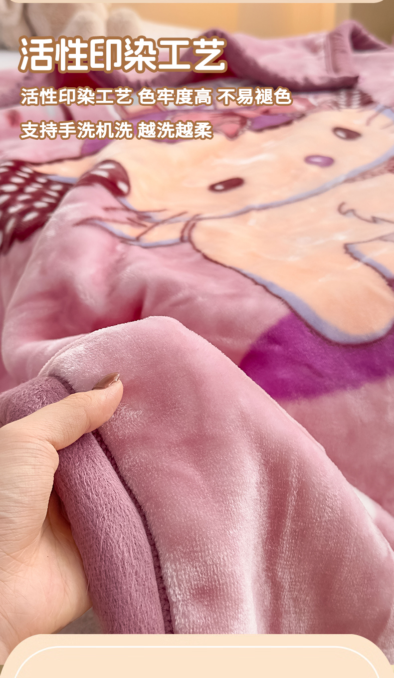 爱彼家纺 2025冬季新款拉舍尔童毯毛毯毯子-系列二 拉舍尔童毯-小小公主03绿灰