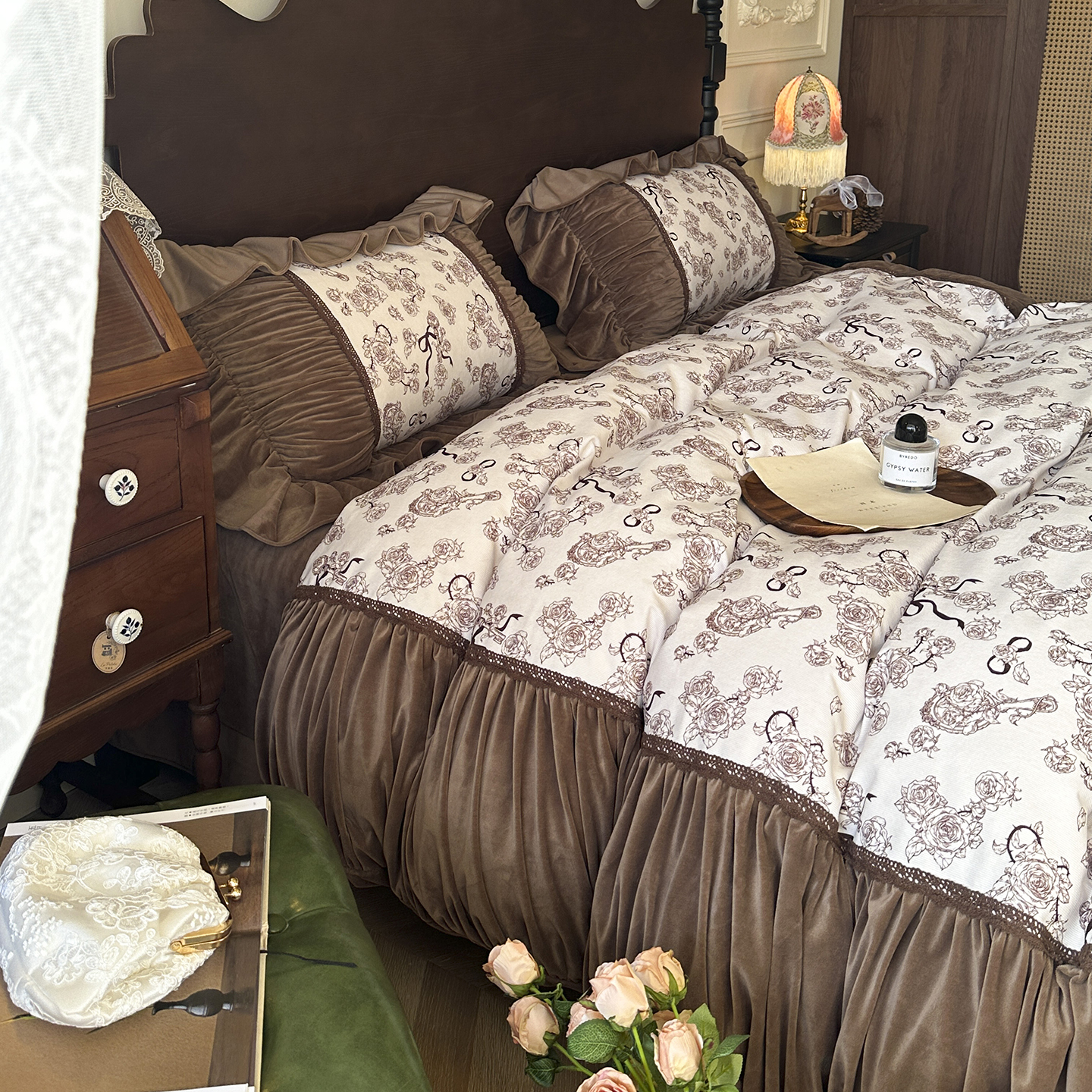 商品名称:(总)多乐娜 2025新款法式风全消光奶芙绒牛奶绒四件套高克重婴儿宝宝绒四件套玫瑰蒂芙尼场景图2 (会员-20 控价最低368起)